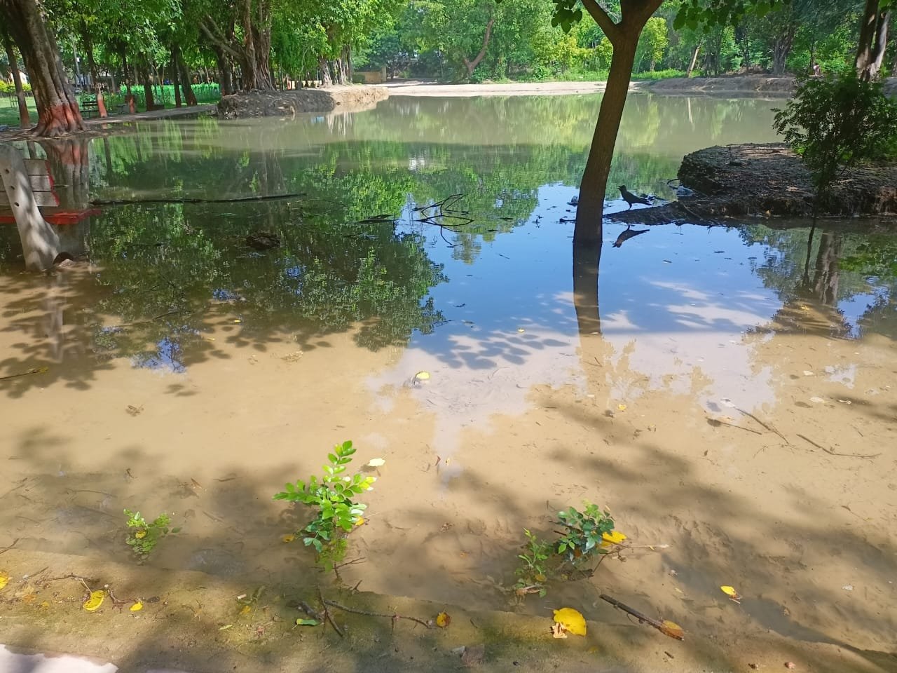 पार्क में जो यह तालाब बना हुआ है यह बारिश और बाढ़ के पानी से बना हुआ तालाब नहीं है। यह पानी पार्क में होकर जा रही गंगा वाटर की लाइन से लीक होकर बह रहा है। इस बारे में स्थानीय निवासियों ने जोनल कार्यालय मयूर विहार दिल्ली जल बोर्ड से लेकर डीडीए के उच्च अधिकारियों तक की हुई है। लेकिन उन्हें न तो व्यर्थ बह रहे गंगा वाटर की चिंता है और न ही इस पानी में पल रहे डेंगू के मच्छरों से होने वाली बीमारियों की। कन्फडरेशन ऑफ एनसीआर आरडब्ल्यूए ईस्ट दिल्ली चैप्टर के सचिव अशोक शर्मा का कहना है कि इस संदर्भ में स्थानीय निवासी तथा वरिष्ठ समाजसेवी पतराम त्यागी, रणवीर वालिया व बृजभान त्यागी ने दिल्ली जल बोर्ड के मयूर विहार स्थित कार्यालय के उच्च अधिकारियों तथा डीडीए के उद्यान विभाग में भी इसकी शिकायत दर्ज कराई लेकिन महीने ऊपर का समय बीतने के बाद भी पानी व्यर्थ ज्यों का त्यों बह रहा है। पानी की वजह से बने इस तालाब से पार्क के पेड़ पौधे तो बर्बाद हो ही रहे हैं। साथ ही मच्छर पनपने से डेंगू के फैलने का भी पैदा हो गया है