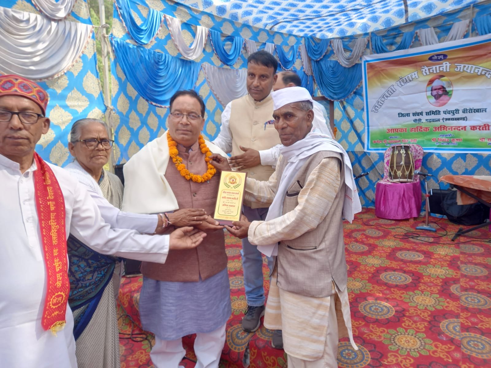17 अक्टूबर को आर्य समाज पंचपुरी, बीरोंखाल में उत्तराखंड रत्न, कर्मवीर जयानंद भारतीय जी की 144वीं जयंती समारोह के अवसर पर उल्लेखनीय सामाजिक कार्यों के लिए प्रदान किया गया सम्मान।