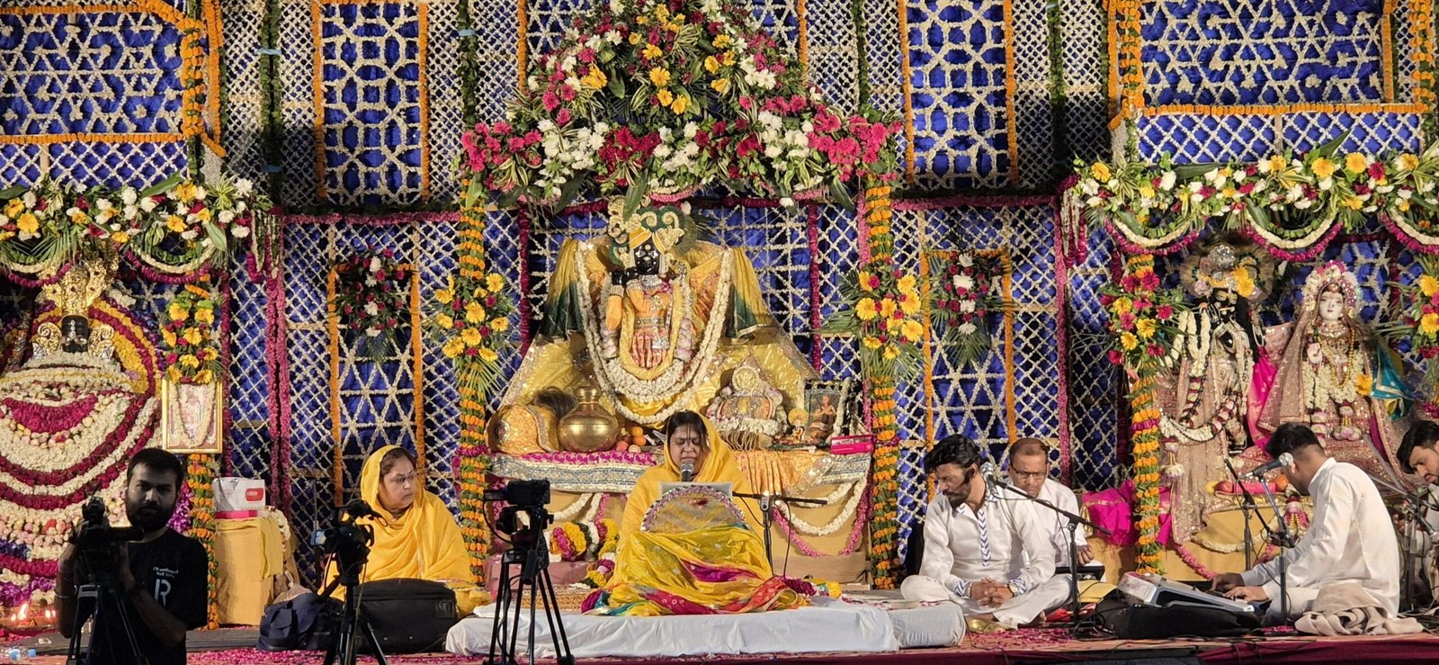 वृंदावन के पावन धाम में ठाकुर श्री बिहारी जी के दिव्य दरबार में, परम आदरणीया बृज रसिका पूनम दीदी और श्रद्धेय महाराज चित्र विचित्र बिहारी दास जी ने अपने मनमोहक भजनों द्वारा संपूर्ण वातावरण को भक्तिरस से सराबोर कर दिया। उनकी संकीर्तन प्रस्तुति ने उपस्थित श्रद्धालुओं को मंत्रमुग्ध कर दिया।