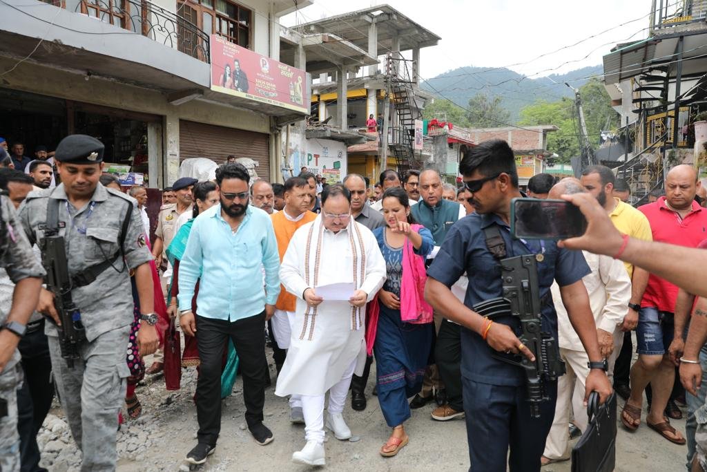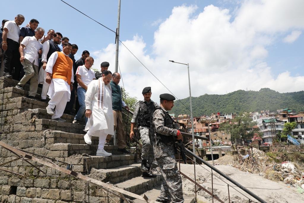 हिमाचल के मंडी क्षेत्र में जेपी नड्डा ने बाढ़ और भारी बारिश से हुए भयावह नुकसान का आकलन किया