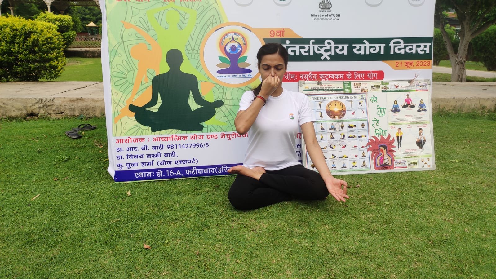 वैश्विक फलक पर आयोजित ‘अन्तर्राष्ट्रीय योग दिवस’ के इस अवसर पर फरीदाबाद के अनेको गणमान्यो मे विशाल पाहवा, पंडित भीम दत्त शास्त्री, सलोनी सिंह, काजल सिंह, गीता मन्दिर सचिव सोमनाथ गुप्ता, विजय पपनैं, सुपर सील्स इंडिया निर्देशक (एचआरडी) टी एस रावत, भारतीय योग संस्थान शीर्ष अधिकारी शीला जी व आर के शर्मा, आरती गुप्ता इत्यादि इत्यादि सहित बडी संख्या मे प्रबुद्ध जनो द्वारा योग एक्सपर्ट पूजा शर्मा द्वारा बताऐ गए योग साधना गुर, नेचुरोपैथी और योग के द्वारा विना पिल्स और ड्रग्स के स्वस्थ रहने के बावत अवगत कराया गया।