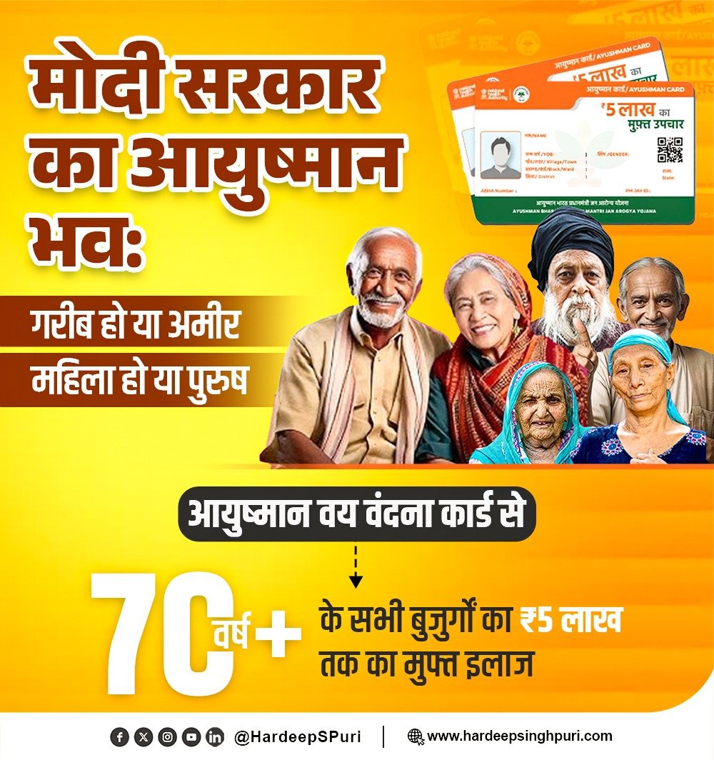 अब तक देश भर के लाखों बुज़ुर्ग इस योजना से लाभान्वित हो चुके हैं, परन्तु पूर्ववर्ती केजरीवाल सरकार की राजनीतिक दुर्भावना के चलते दिल्ली इससे वंचित थी। अब रेखा गुप्ता सरकार के कार्यभार संभालने के बाद दिल्ली के नागरिकों के लिए भी केंद्र की लोक-कल्याणकारी योजनाएं सुलभ हो रही हैं। यह जानकारी केंद्रीय मंत्री हरदीप सिंह सिंह पुरी ने अपने एक्स हैंडल के माध्यम से साझा की है।