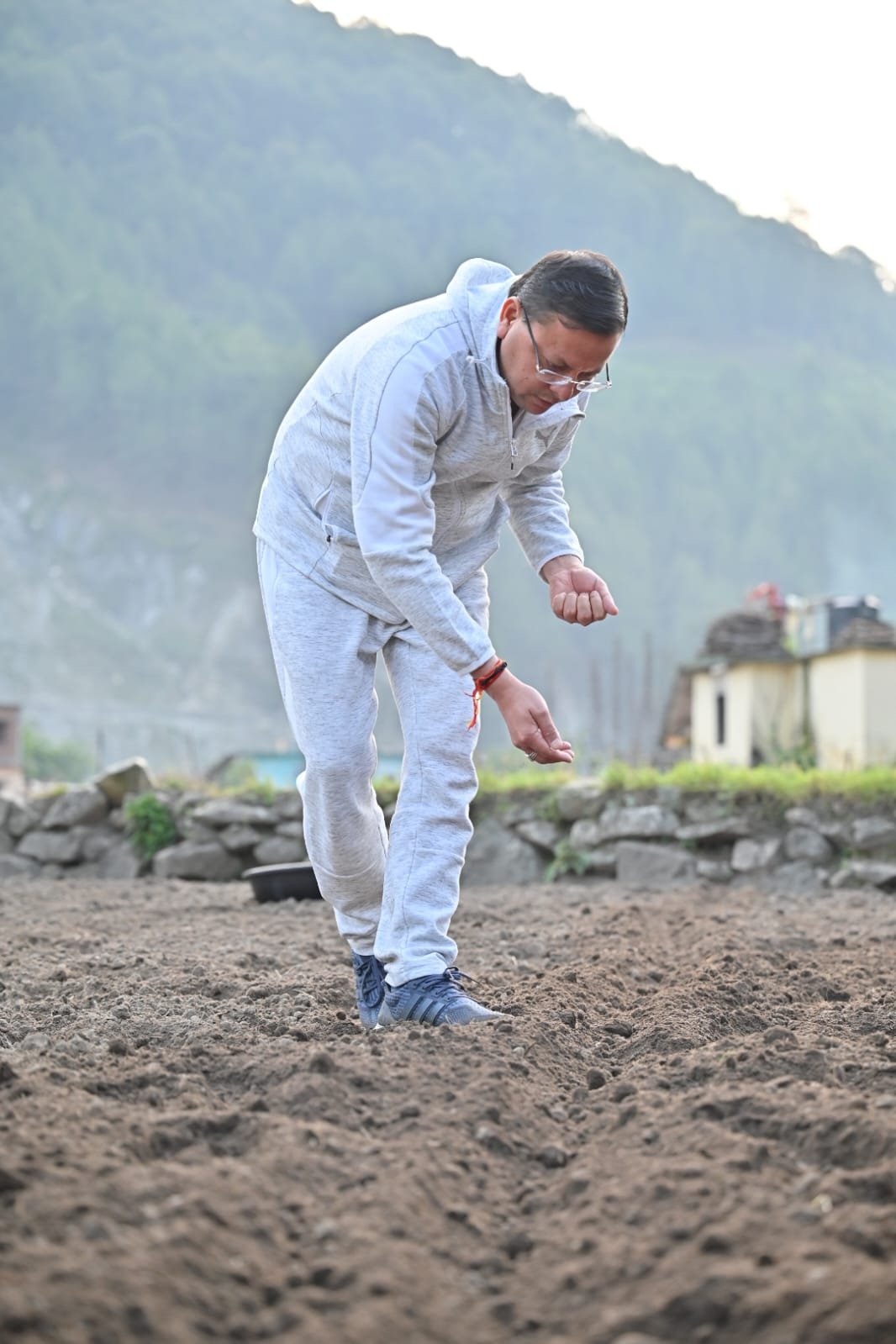 उत्तरकाशी के ग्राम शिरोर में “मंडुआ” की बुवाई की पुष्कर सिंह धामी ने