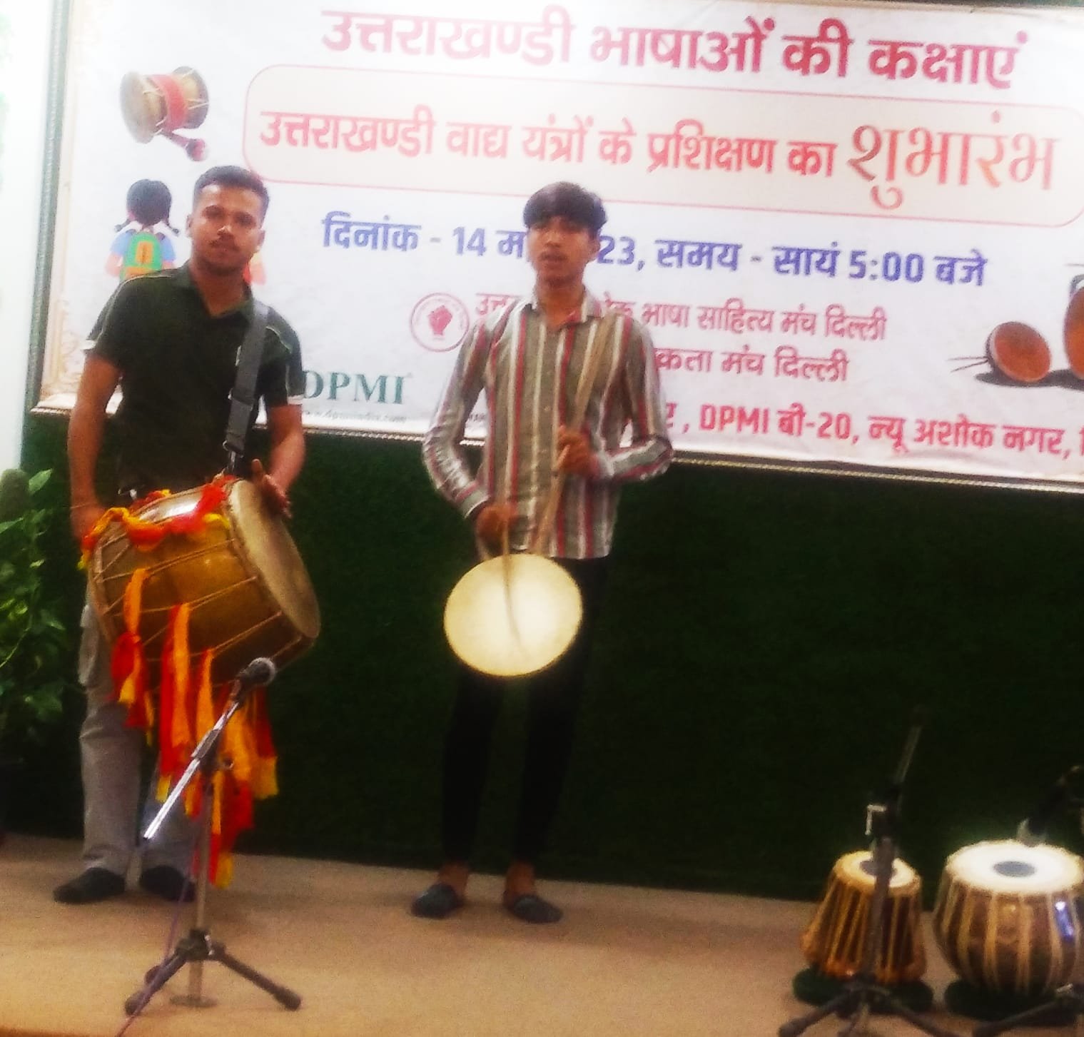 मुख्य आयोजन कर्ता व डीपीएमआई चेयरमैन डाॅ विनोद बछेती द्वारा सभागार में उपस्थित सभी प्रबुद्ध जनो का स्वागत अभिनंदन कर अवगत कराया गया, 2012 से उत्तराखंड की बोली-भाषा के संवर्धन पर दिल्ली महानगर मे उत्तराखंड प्रवासी बहुल इलाको मे यह कार्य चल रहा था। 2016 मे इस प्रतिबद्धता को धरातल पर उतारा गया। बोली-भाषा की कक्षाऐ आरंभ की गई। सम्पूर्ण एनसीआर मे प्रवासियो के बच्चों द्वारा बडे स्तर पर बोली-भाषा सीखने मे रुचि दिखाई गई। उत्तराखंडी बोली-भाषा मे भाषण, नाटक व गीत गायन के कार्यक्रम आयोजित किए गए। उद्देश्य मे सफलता मिलती देख 2023 से एक और नई विधा, संगीत से जुडी वाद्ययंत्रों की शिक्षा व विलुप्ति की कगार पर खडे वाद्यो के संरक्षण व संवर्धन पर कार्यशालाऐ व प्रशिक्षण की योजना नौनिहालो सहित सभी वर्ग के लोगों के लिए आयोजित की जा रही हैं। उक्त विधा से जुडे निपुण व प्रतिभावान वादको द्वारा 50 कार्यशालाओ व प्रशिक्षण केन्द्रो मे शिक्षा दिल्ली एनसीआर सहित उत्तराखंड के कई कस्बो मे आयोजित की जा रही हैं। आगामी रविवार 21मई से हर रविवार सांय 4 से 7 बजे तक दस सप्ताह तक उक्त कक्षाओ व कार्यशालाओ का आयोजन किया जायेगा।