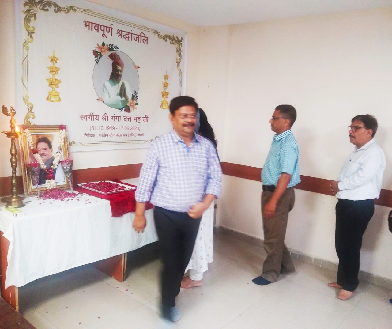 श्रद्धांजलि सभा के इस अवसर पर दिल्ली एनसीआर मे स्थापित उत्तराखंड की विभिन्न प्रवासी सांस्कृतिक, सामाजिक व अन्य विधाओ व कार्यो से जुडे संस्थाओ व संस्थानों के प्रमुख प्रबुद्ध जनो मे प्रमुख रमेश कांडपाल, मयंक भट्ट, कमल कर्नाटक, चंद्र मोहन पपनैं, डाॅ विनोद बछेती, के एन पांडे ‘खिमदा’, मनोज चंदोला, हरि सेमवाल, दिनेश फुलारा, डाॅ हरिसुमन बिष्ट, सुरेश पांडे, कुम्मू जोशी भटनागर, चारु तिवारी, गोपाल उप्रेती, संजय जोशी, के सी पांडे, टी सी उप्रेती, ख्यालीराम पंत इत्यादि इत्यादि द्वारा उत्तराखंड की लोककला व संस्कृति के प्रति छह दशकों तक समर्पित रहे सुपरिचित दिवंगत गंगा दत्त भट्ट को श्रद्धांजलि अर्पित करते हुए व्यक्त किया गया, दिल्ली महानगर मे सांस्कृतिक चेतना के महत्वपूर्ण स्तंभ गंगा दत्त भट्ट का निधन उत्तराखंड की सांस्कृतिक और रंगमंचीय सरोकारों की उस पीढी का अवसान है जो बहुत संघर्षो और संसाधनो के बिना अपनी थाती को बचाने और उसके विस्तार में लगे हुए थे।