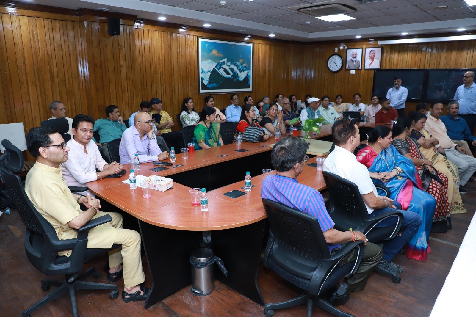 आयोजित स्वागत एवं संवाद समारोह में दिल्ली एनसीआर में विभिन्न मीडिया प्रतिष्ठानों में कार्यरत रहे पत्रकारों, जानीमानी सांस्कृतिक, सामाजिक संगठनो, उद्योग जगत व प्रतिष्ठित संस्थानों से जुड़े प्रबुद्ध जनों द्वारा लंबी कतार लगा कर नव नियुक्त मीडिया सलाहकार समिति अध्यक्ष प्रो.(डॉ) गोविंद सिंह को पुष्पगुच्छ व शाल ओढ़ा कर स्वागत, अभिनन्दन किया गया, बधाई दी गई।