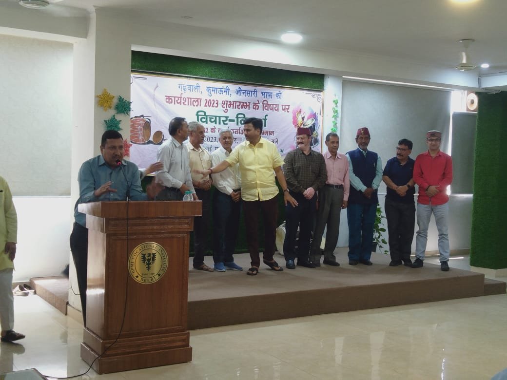 नई दिल्ली: उत्तराखण्ड लोक-भाषा साहित्य मंच, दिल्ली द्वारा 9 अप्रैल, 2023 को डीपीएमआई सभागार न्यू अशोक नगर में आयोजित बैठक में आगामी 14 मई, 2023 से शुरू होने वाली गढ़वाली, कुमाउनी ग्रीष्मकालीन कक्षाओं के सुचारू रूप से संचालन हेतु समाज सेवियों एवं साहित्यकारों की एक अहम बैठक का आयोजन किया गया। जिसमें आगामी सत्र में गढ़वाली, कुमाउनी भाषाओं के साथ-साथ बच्चे गढ़वाली एवं कुमाउनी नाटक एवं लोकगीत भी सीखेंगे। इस हेतु श्रीमती लक्ष्मी रावत एवं डॉ कुसुम भट्ट व मनोरमा तिवारी भट्ट नाटक एवं लोकगीतों के क्षेत्र में बच्चों को पारंगत करेंगी।