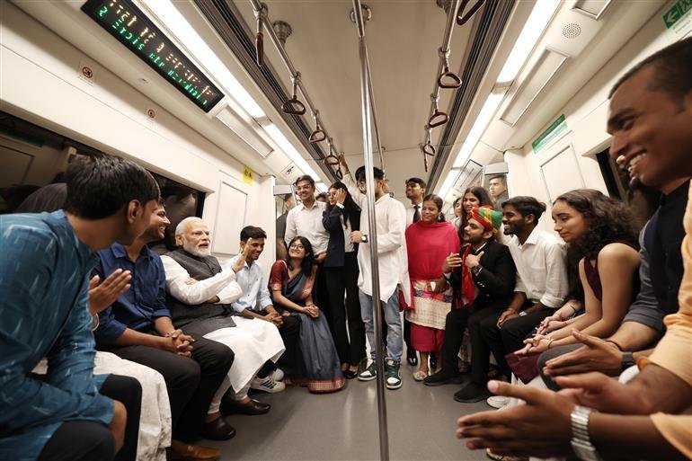 प्रधानमंत्री ने दिल्ली विश्वविद्यालय पहुंचने के लिए मेट्रो की सवारी की। यात्रा के दौरान उन्होंने छात्रों से बातचीत भी की। पहुंचने पर, प्रधानमंत्री ने ‘जर्नी ऑफ 100 इयर्स’ प्रदर्शनी देखी। उन्होंने विश्वविद्यालय के संगीत एवं ललित कला संकाय द्वारा प्रस्तुत सरस्वती वंदना और विश्वविद्यालय कुलगीत भी देखा।