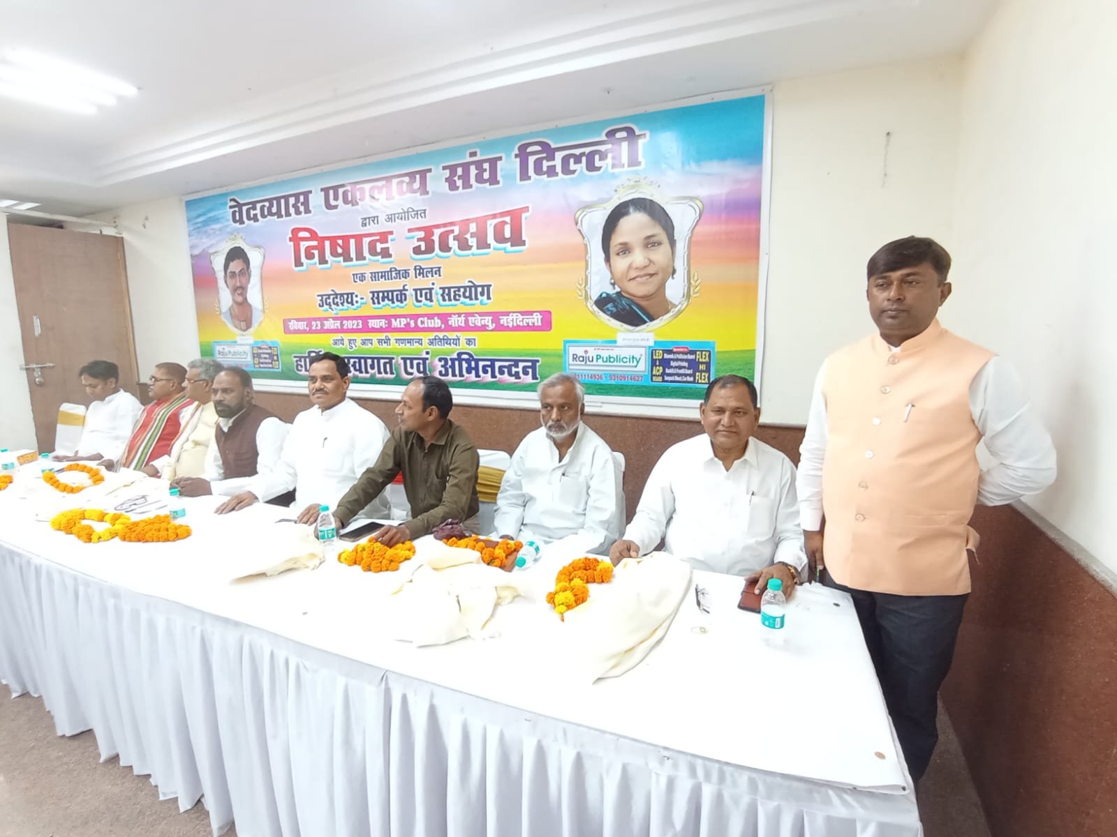 दिल्ली। आज वेदव्यास एकलव्य संघ के बैनर के तले निषाद उत्सव का आयोजन नॉर्थ एवेन्यू एमपी क्लब में सैकड़ों की संख्या में पहुंचे निषाद समाज के लोगों उपस्थिति में संपन्न हुआ। इस मिलन समारोह में राज्यसभा के पूर्व सांसद विशंभर प्रसाद निषाद, बिहार विधानसभा परिषद के सदस्य हरि साहनी, उत्तर प्रदेश निषादों के नेता लोटन राम निषाद, बिहार निषाद संघ के जलेश्वर सहानी, गोरखपुर के उद्योगपति शिव साहनी, मुजफ्फरनगर के लालबाबू साहनी, आनंद निषाद और मंचासीन सभी नेताओं ने इस मौके पर निषाद एकता पर विस्तार से चर्चा की, और निषाद समाज के लोगों से आग्रह किया कि अपने समाज में एकता लाकर समाज को एकजुट कर प्रदेश और देश के विकास में अपनी अहम भूमिका निभाए।