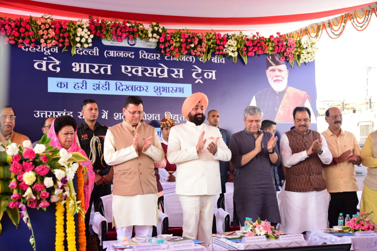 प्रधानमंत्री नरेन्द्र मोदी ने गुरूवार को देवभूमि उत्तराखण्ड को देहरादून-दिल्ली (आनंद विहार टर्मिनल) वंदे भारत एक्सप्रेस की नई सौगात दी। प्रधानमंत्री ने वर्चुअल माध्यम से हरी झंडी दिखाकर देहरादून-दिल्ली वंदे भारत एक्सप्रेस का शुभारंभ किया। इस अवसर पर उन्होंने उत्तराखण्ड के समस्त रेल मार्गों के लिए विद्युतीकरण की सौगात भी दी। देहरादून-दिल्ली वंदे भारत एक्सप्रेस के शुभारंभ अवसर पर देहरादून रेलवे स्टेशन पर राज्यपाल लेफ्टिनेंट जनरल गुरमीत सिंह (से.नि), मुख्यमंत्री पुष्कर सिंह धामी, केन्द्रीय रेल मंत्री श अश्विनी वैष्णव, केन्द्रीय रक्षा और पर्यटन राज्य मंत्री श्री अजय भट्ट, मंत्रीगण, सांसदगण एवं विधायकगण उपस्थित थे।