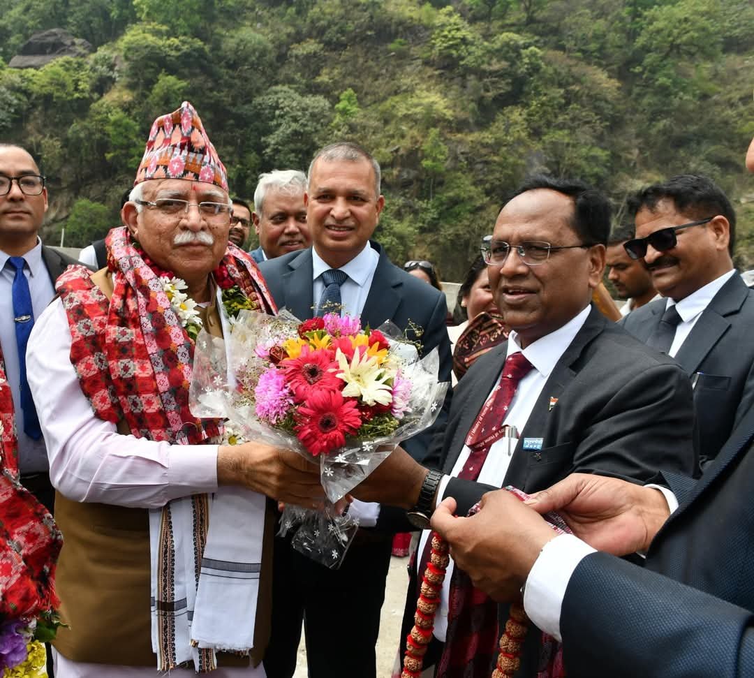 भारतीय प्रतिनिधिमंडल का नेतृत्व कर रहे मनोहर लाल का स्वागत काठमांडू हवाई अड्डे पर एसजेवीएन के अध्यक्ष (अतिरिक्त प्रभार) आर.के. चौधरी द्वारा किया गया, जो आगे परियोजना स्थल तक मंत्रीद्वय के साथ रहे। इस अवसर पर भारत के नेपाल में राजदूत महामहिम नवीन श्रीवास्तव, नेपाल सरकार के ऊर्जा सचिव सुरेश आचार्य, भारत सरकार के विद्युत मंत्रालय के अपर सचिव आकाश त्रिपाठी, और नेपाल निवेश बोर्ड के सीईओ सुशील ज्ञवाली सहित कई वरिष्ठ अधिकारी उपस्थित रहे।