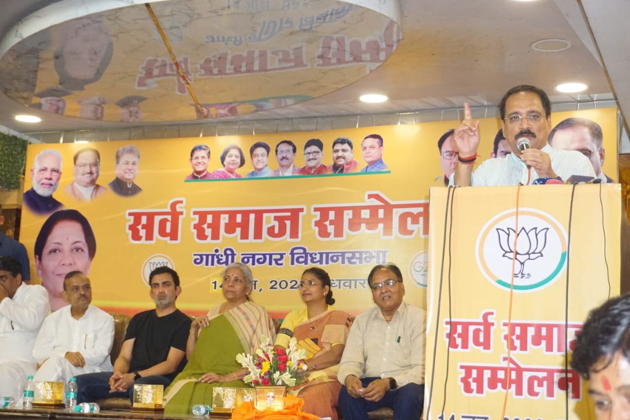 नई दिल्ली, । : वित्त मंत्री श्रीमती निर्मला सीतारमण, प्रदेश भाजपा अध्यक्ष वीरेन्द्र सचदेवा और सांसद गौतम गंभीर ने गांधी नगर विधानसभा में आयोजित सर्व समाज सम्मेलन को संबोधित करते हुए मोदी सरकार के नौ साल में भारत में हुए अभूतपूर्व परिवर्तन के बारे में विस्तार से चर्चा की और साथ ही केजरीवाल सरकार द्वारा किए गए भ्रष्टाचार के बारे में भी लोगों को जानकारियां दी। इस मौके पर विधायक अनिल वाजपेयी, ओम प्रकाश शर्मा, जिला अध्यक्ष श्रीमती लता गुप्ता सहित अन्य पदाधिकारी उपस्थित थे।