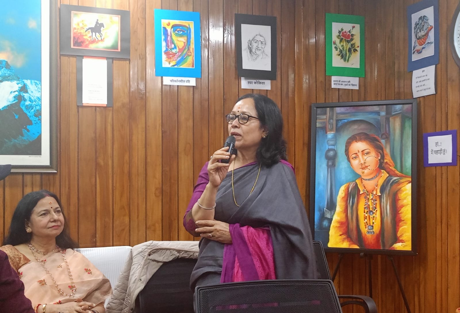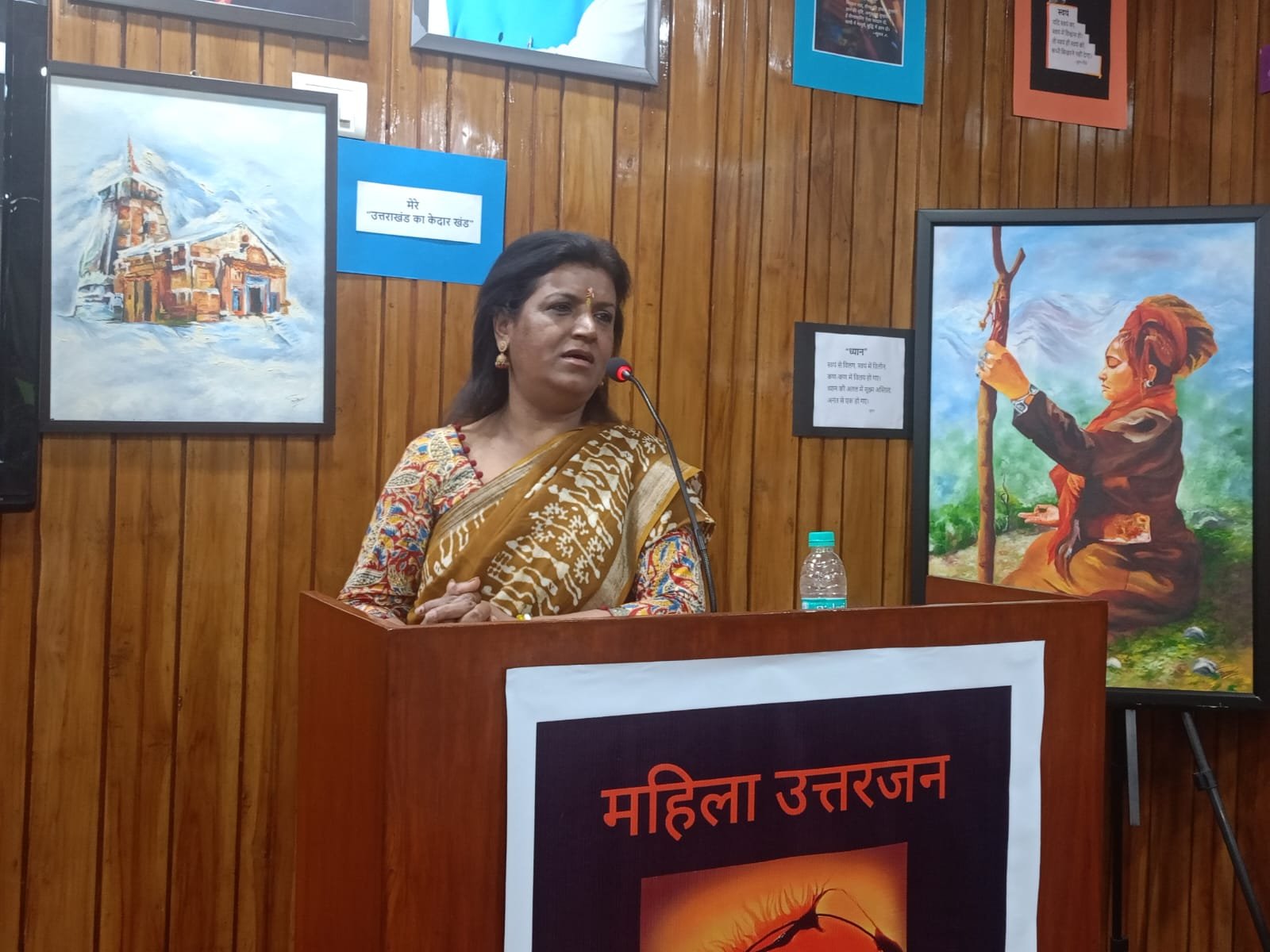 अंतर्राष्ट्रीय महिला दिवस पर उत्तराखंड सदन सभाकक्ष को चित्रकार सुमन गौण द्वारा स्व-निर्मित चित्रों के माध्यम से देश की प्रेरणादाई महिलाओं के चित्रों को प्रभावशाली अंदाज में सजाया, संवारा गया था।