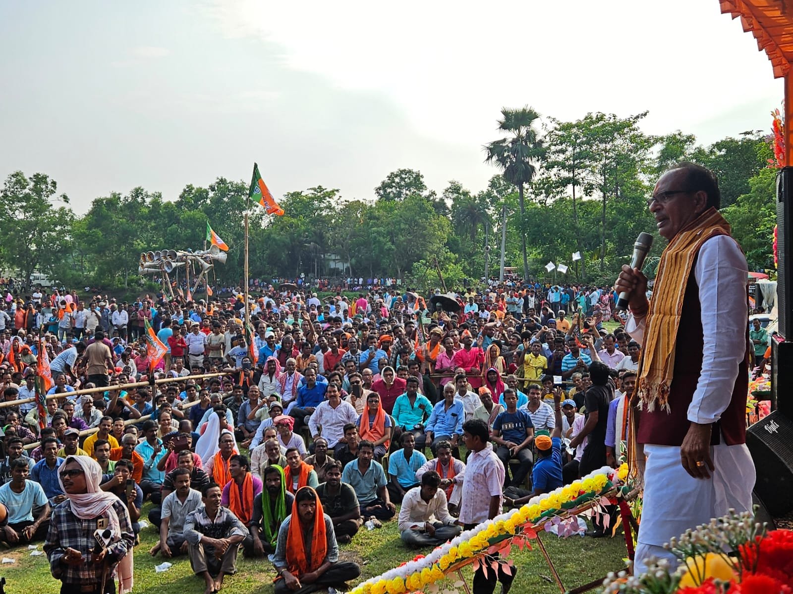 श्री चौहान ने कहा बंगाल तो मिठास के लिए जाना जाता है, लेकिन ममता बनर्जी ने बंगाल की मिठास में जहर घोलने का काम किया है। ममता दीदी मां, माटी और मानुष की जगह मनी, माफिया और मर्डर की सरकार चला रही हैं। बंगाल में पवित्र त्योहार है सिंदूर खेला जिसे सभी लोग तो उत्साह से मनाते हैं, लेकिन ममता सरकार ने कई बहनों की मांग उजाड़ने का काम किया है। पूर्व सीएम ने जनता से आह्वान करते हुए कहा कि माफियाओं , करप्शन, मर्डर की सरकार, मां, बहन की इज्जत से खेलने वाली सरकार को उखाड़ने का शंखनाथ कर दो। पूर्व मुख्यमंत्री ने कहा कि गीता में भगवान श्री कृष्ण ने कहा है कि अन्याय करने वाला कितना भी सगा रिश्तेदार क्यों न हो, उसको मार देना ही धर्म है, आज हम वोट की चोट से मारकर इस सरकार को उखाड़ फेंक सकते हैं।