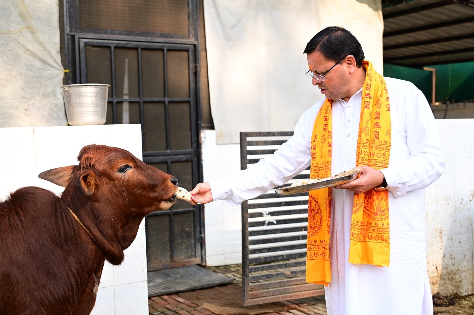 उत्तराखंड के मुख्यमंत्री पुष्कर सिंह धामी ने आज प्रातः काल मुख्यमंत्री आवास स्थित देवालय में श्री राम मंदिर प्राण प्रतिष्ठा के शुभ अवसर श्री रामचरितमानस की चौपाइयों का पाठ किया। इसके उपरांत उन्होंने आवास परिसर में स्थित गौशाला पहुंचकर गौ माता की सेवा भी की।