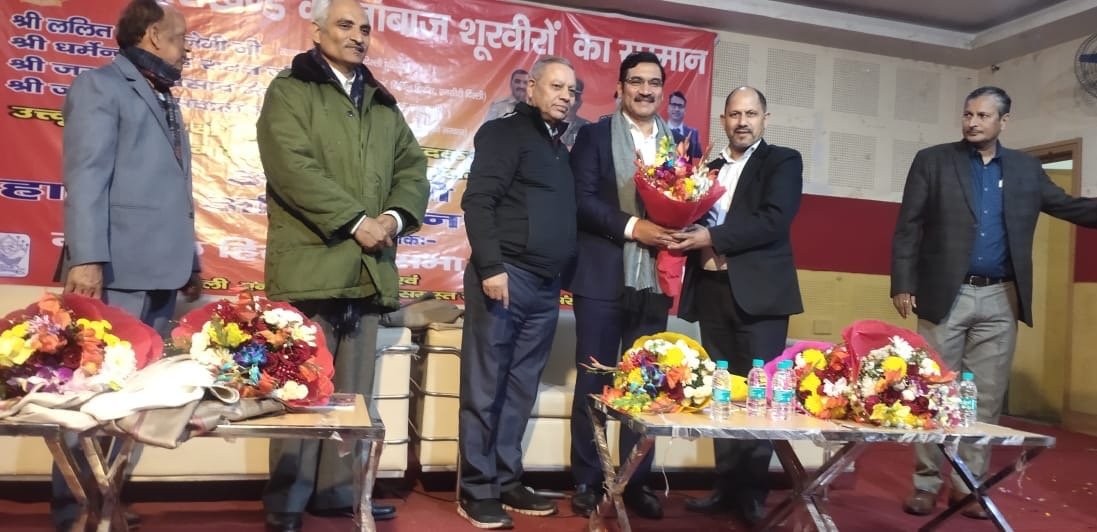 नई दिल्ली। उत्कृष्ट सेवा के लिए गणतंत्र दिवस पर राष्ट्रपति पदक से सम्मानित हुए उत्तराखंड के चार जांबाज शूरवीरों ललित मोहन नेगी एसीपी स्पेशल ब्रांच दिल्ली पुलिस, धर्मेंद्र सिंह रावत कमांडेंट होमगार्ड एवं सिविल डिफेंस एनसीटी दिल्ली, जगदीश प्रसाद मैठाणी ग्रुप कमांडर एनएसजी तथा जयेंद्र असवाल सहायक केंद्रीय इंटेलीजेंस अधिकारी भारत सरकार का उत्तराखंड की दिल्ली एनसीआर में गठित प्रवासी सामाजिक, सांस्कृतिक व बौद्धिक संस्थाओ द्वारा 7 फरवरी को भव्य नागरिक अभिनन्दन समारोह का आयोजन गढ़वाल हितैषिणी सभा के तत्वाधान में गढवाल भवन झंडेवालान में आयोजित किया गया।