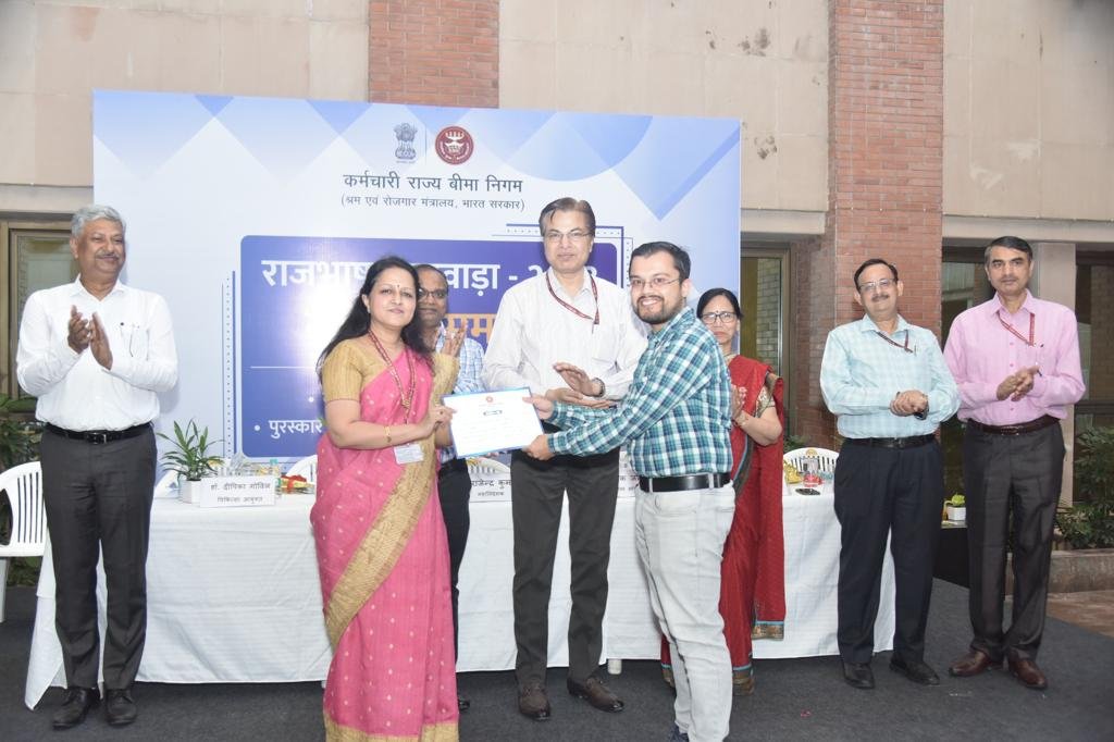 दिल्ली।ईएसआईसी, मुख्यालय में आज राजभाषा पखवाड़ा समापन समारोह का आयोजन किया गया। इस समारोह की अध्यक्षता ईएसआईसी के महानिदेशक डॉ. राजेंद्र कुमार द्वारा की गई। साथ हीमारोह में निगम के मुख्य सतर्कता अधिकारी मनोज कुमार सिंह एवं वरिष्ठ अधिकारियों के साथ-साथ अन्य अधिकारी व कर्मचारीगण उपस्थित रहे।