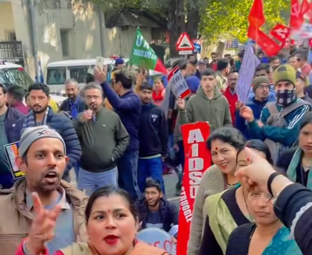 इधर, दिल्ली के बाद उत्तराखंड की राजधानी देहरादून में भी जनआक्रोश सड़कों पर दिखाई दिया। विभिन्न सामाजिक, महिला और युवा संगठनों ने परेड ग्राउंड से मुख्यमंत्री आवास की ओर विशाल रैली निकाली, जिसमें हजारों लोग शामिल हुए। प्रशासन ने सुरक्षा कारणों से रैली को कुछ दूरी पहले रोक दिया, लेकिन प्रदर्शन शांतिपूर्ण रहा। “अंकिता हम शर्मिंदा हैं, तेरे कातिल जिंदा हैं”, “CBI जांच कराओ” और “धामी सरकार मुर्दाबाद” जैसे नारों से राजधानी गूंजती रही।