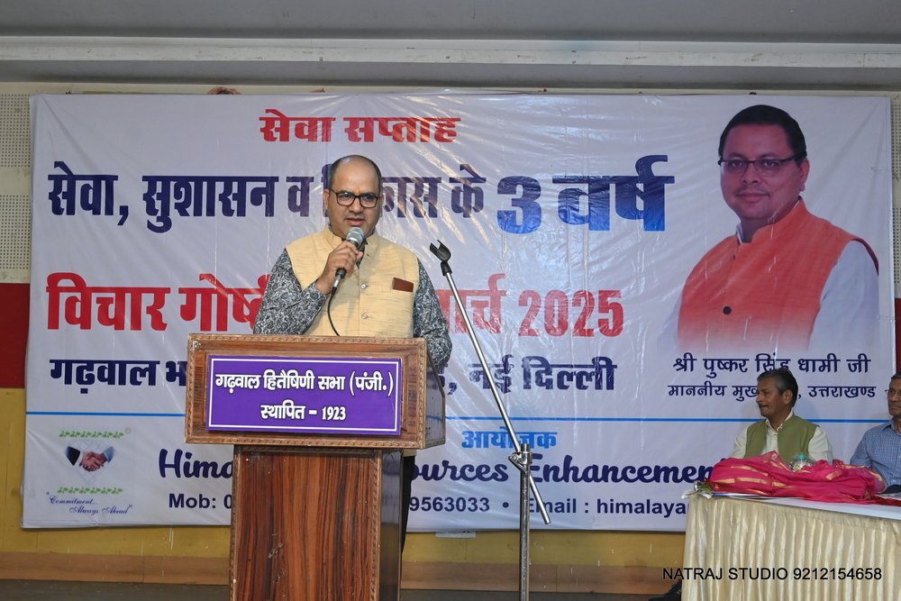 Amar sandesh नई दिल्ली। उत्तराखंड के मुख्यमंत्री श्री पुष्कर सिंह धामी के द्वितीय कार्यकाल के तीन वर्ष पूर्ण होने के अवसर पर दिल्ली के प्रतिष्ठित गढ़वाल भवन में हिमालय रिसोर्सेज एनहैंसमेंट समिति द्वारा एक विचार गोष्ठी का आयोजन किया गया। इस गोष्ठी में दिल्ली-एनसीआर के प्रतिष्ठित व्यक्तियों, वरिष्ठ अधिकारियों, समाजसेवियों, प्रोफेशनल एक्सपर्ट्स, संस्कृतिकर्मियों, महिलाओं और युवाओं ने भाग लिया और विचार साझा किए।