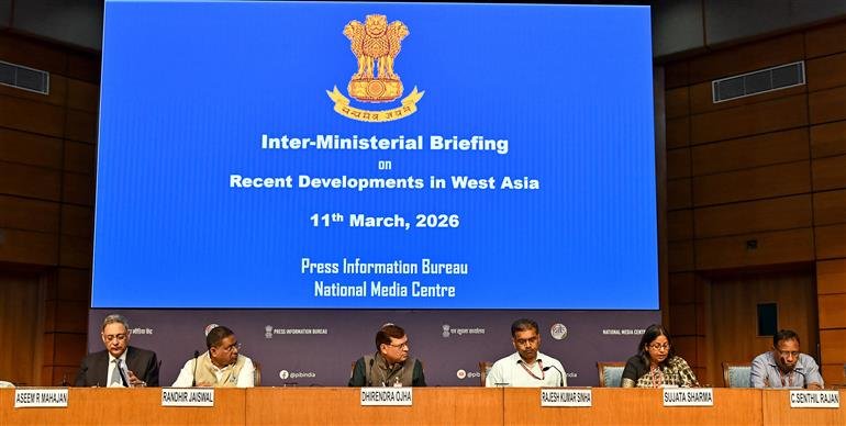 नई दिल्ली। एशिया में हाल के घटनाक्रमों को देखते हुए केंद्र सरकार ने स्थिति पर कड़ी नजर रखते हुए आवश्यक तैयारियां तेज कर दी हैं। इसी क्रम में बुधवार को नई दिल्ली स्थित राष्ट्रीय मीडिया केंद्र में एक अंतर-मंत्रालयी प्रेस वार्ता आयोजित की गई। इस बैठक में पेट्रोलियम एवं प्राकृतिक गैस मंत्रालय, विदेश मंत्रालय, बंदरगाह, जहाजरानी और जलमार्ग मंत्रालय तथा सूचना एवं प्रसारण मंत्रालय के वरिष्ठ अधिकारियों ने मीडिया को सरकार द्वारा उठाए जा रहे कदमों की विस्तृत जानकारी दी। अधिकारियों ने कहा कि देश में ऊर्जा आपूर्ति, समुद्री व्यापार, आवश्यक वस्तुओं की उपलब्धता और विदेशों में भारतीय नागरिकों की सुरक्षा को लेकर सरकार पूरी तरह सतर्क है और सभी संबंधित मंत्रालयों के बीच लगातार समन्वय बनाए रखा जा रहा है।