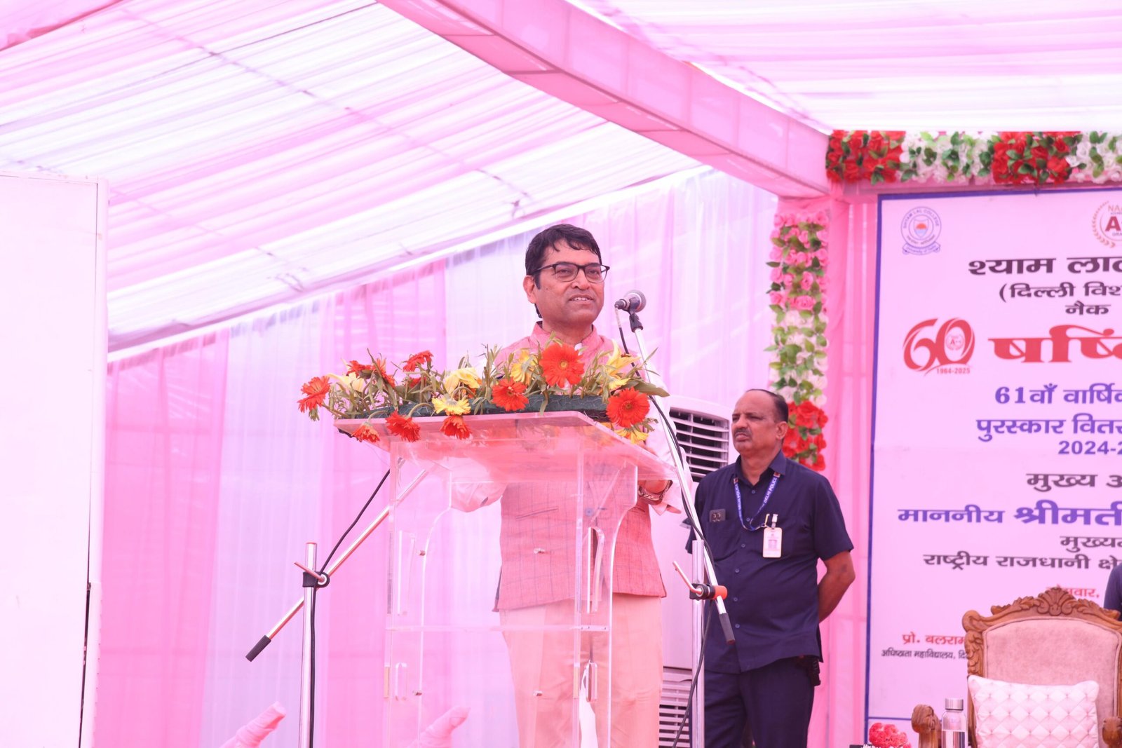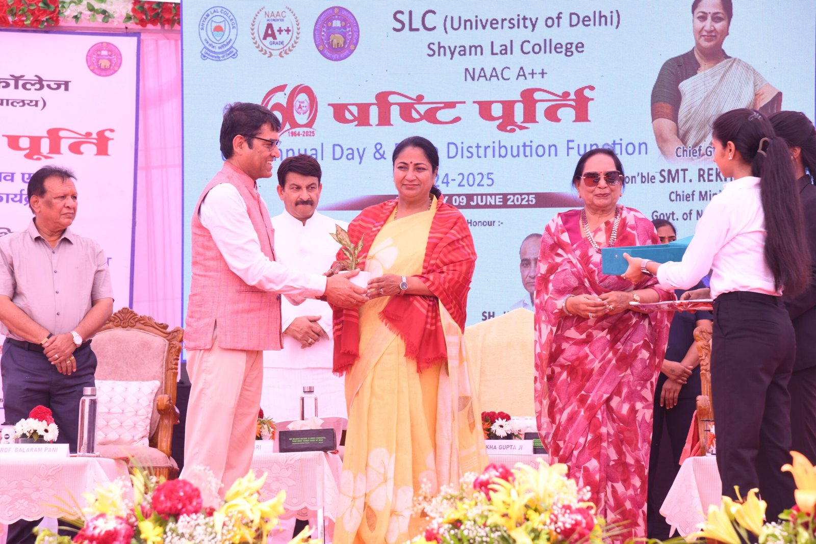 घोषणा की कि वे 800 लोगों की बैठने की क्षमता वाले विशाल अत्याधुनिक वातानुकूलित सभागार का निर्माण करेंगे और उन्होंने श्याम लाल कॉलेज के सभी हितधारकों को बधाई दी। कार्यक्रम की शुरुआत में दिल्ली पुलिस ने मुख्यमंत्री श्रीमती रेखा गुप्ता का भव्य स्वागत किया। मुख्यमंत्री ने कॉलेज की षष्ठी पूर्ति के उपलक्ष्य में गणेश मंदिर के पास एक पौधा भी लगाया। माननीय मुख्यमंत्री ने कॉलेज के पद धारकों और सर्वश्रेष्ठ प्रदर्शन करने वालों को पुरस्कार प्रदान किए।