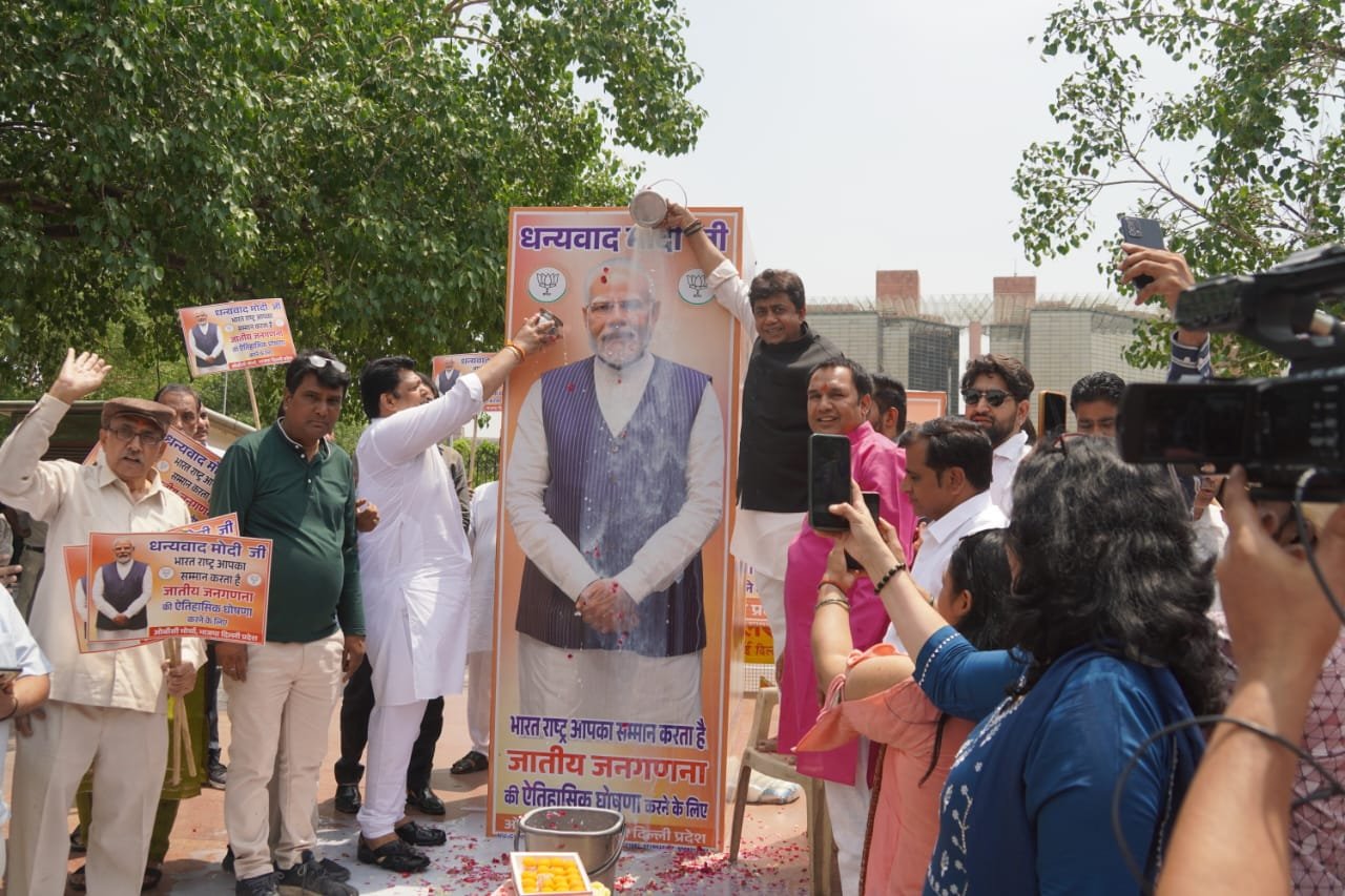 प्रधानमंत्री मोदी सरकार के जातिगत जनगणना निर्णय का दिल्ली बीजेपी ओबीसी मोर्चा ने मिठाइयां बांटकर किया स्वागत