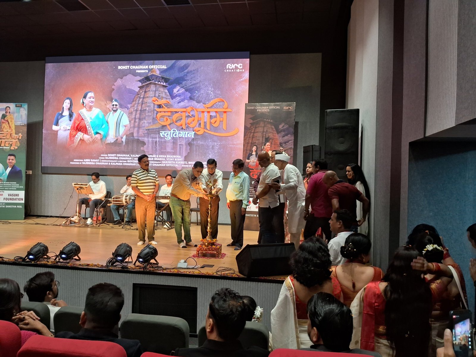 आयोजित देवभूमि स्तुतिगान लोकार्पण समारोह का श्रीगणेश प्रबुद्ध जनों में प्रमुख पी एन शर्मा, उपेंद्र पोखरियाल, आर बी घिल्डियाल, अनिल शुक्ला, विनोद कपटियाल, डॉ. सतीश कालेश्वरी, दलजीत सिंह रावत, जय किशन गौड़, विपिन मल्हन, आदित्य घिल्डियाल, कल्पना चौहान इत्यादि इत्यादि द्वारा दीप प्रज्वलित कर व हेमा भैंसोडा द्वारा गणेश वंदना-