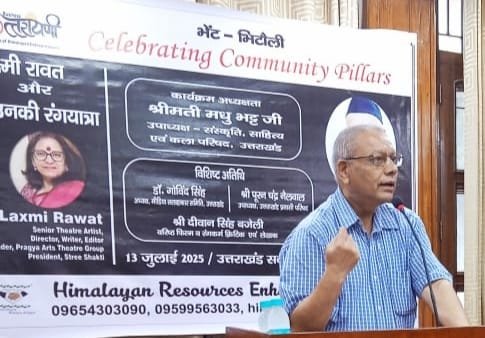 आयोजित आयोजन की अध्यक्षता कर रहे डॉ. गोविंद सिंह द्वारा कहा गया, हमारे यहां जीते जी किसी का सम्मान नहीं होता। आज रंगकर्मी लक्ष्मी रावत जी का सम्मान हो रहा है, उनके द्वारा रंगमंच पटल पर किए कार्यों पर चर्चा हो रही है, सुखद लग रहा है। कहा गया, आजादी के बाद भारतीय रंगमंच का सही विकास नहीं हो पाया। पहले शास्त्रीय रंगमंच छाया रहता था। पहले दो हजार वर्ष पूर्व हमारा रंगमंच बड़ा समृद्ध था। गुलामी में उक्त कड़ी टूटी, लेकिन लोकनाट्य की परंपरा निर्बाध चलती रही। कहा गया, उत्तराखंड की संस्कृति अति समृद्ध रही है। लोकनाट्य की परंपरा पूरे देश में है। राष्ट्रीय नाट्य विद्यालय की स्थापना के बाद उक्त विधा राष्ट्रीय फलक पर विविधता, समग्रता और एक परम्परा का रूप बनी है।