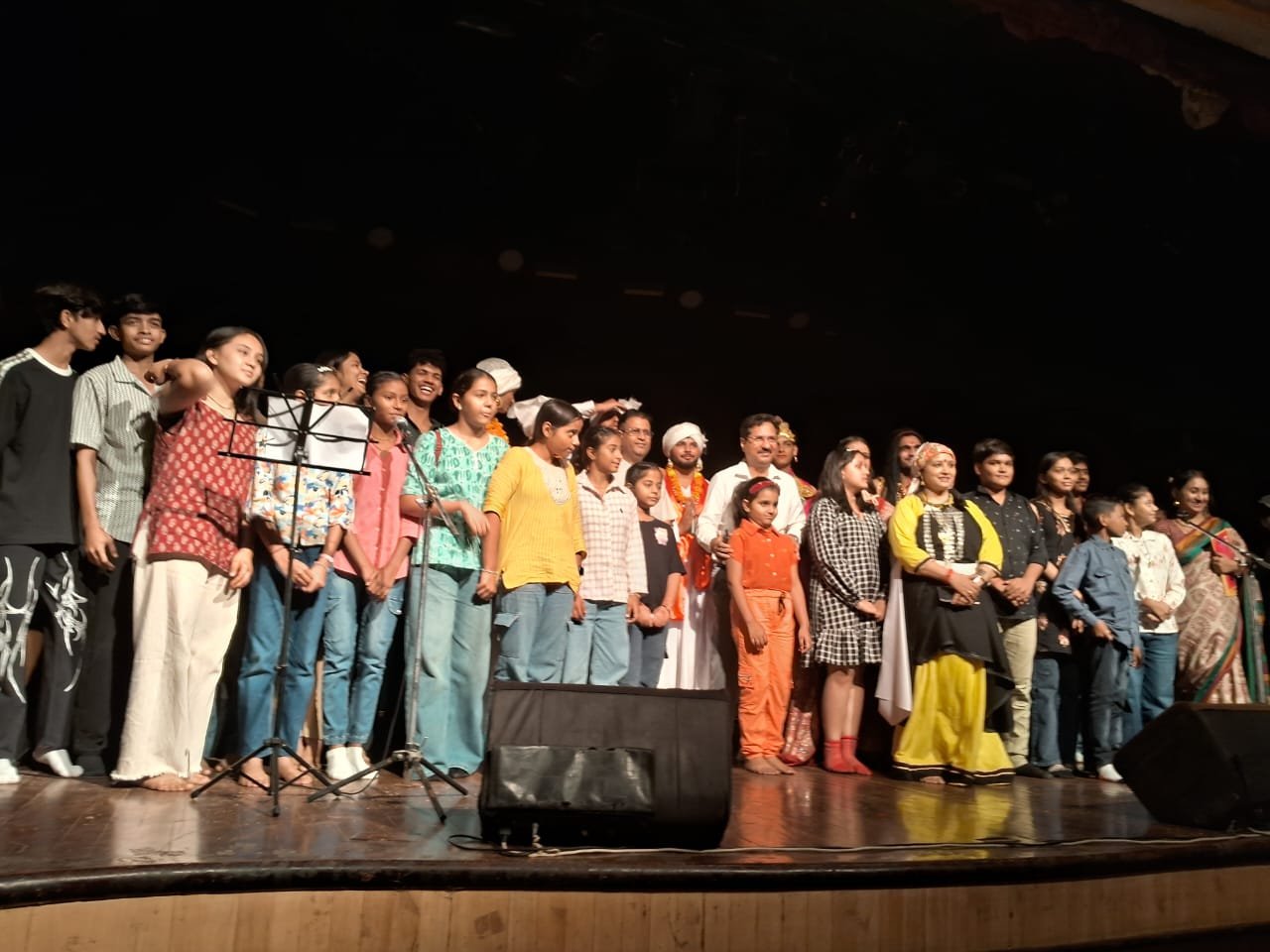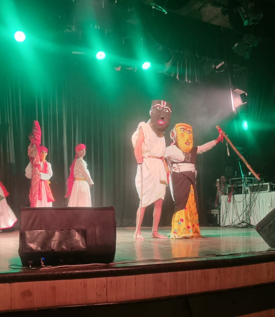 कार्यक्रम की शुरुआत “मौर मौरियाण” नामक नाट्य से हुई, जो उत्तराखंड की विशिष्ट मुखौटा शैली पर आधारित था। कलाकारों ने मुखौटों के माध्यम से पात्रों को जीवंत किया। उत्तराखंड की रम्माण मुखौटा शैली की विश्वव्यापी प्रसिद्धि है, जिसे यूनेस्को ने विश्व धरोहर के रूप में भी घोषित किया है। इस प्रस्तुति ने दर्शकों को उत्तराखंड की इस विशिष्ट और प्राचीन लोकनाट्य कला से गहराई से परिचित कराया और खूब प्रभावित किया।