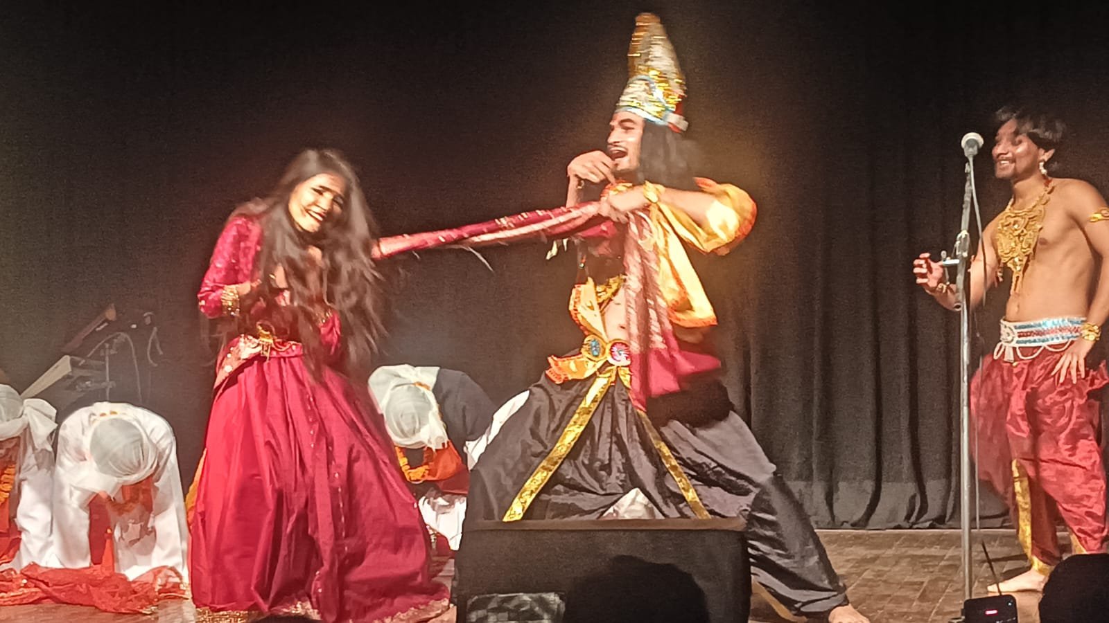 दूसरा नृत्य नाट्य “द्रोपती को नारैण” था, जिसने दर्शकों को भावुक कर दिया। यह प्रस्तुति उत्तराखंड की प्रसिद्ध पांडव भारत शैली के एक महत्वपूर्ण प्रसंग – द्रौपदी चीरहरण से संबंधित थी। कलाकारों ने पारंपरिक लोक शैली में यह दिखाया कि कैसे एक चीर कौरवों के विनाश का कारण बनता है।