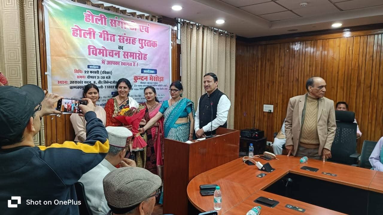 Amar sandesh नई दिल्ली, 22 फरवरी 2026 (रविवार)। उत्तराखंड सदन में स्वर्गीय किशन सिंह भैंसोड़ा (पूर्व सैनिक एवं पूर्व प्रधान, ग्राम चमतोला, जिला अल्मोड़ा) की पुण्यतिथि के अवसर पर होली संगोष्ठी एवं कुमाऊँनी होली गीत संग्रह पुस्तक का भव्य विमोचन गरिमामय वातावरण में सम्पन्न हुआ। कार्यक्रम का शुभारंभ गणेश वंदना एवं पारंपरिक कुमाऊँनी होली गायन से हुआ, जिससे पूरा सभागार सांस्कृतिक रंग में सराबोर हो गया।