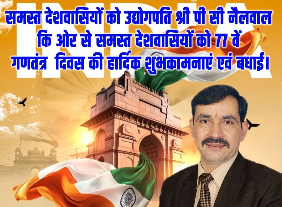 दिल्ली।उत्तराखंड के प्रतिष्ठित उद्योगपति श्री पी. सी. नैलवाल द्वारा 77वें गणतंत्र दिवस के पावन अवसर पर समस्त देशवासियों एवं देवभूमि उत्तराखंड के सम्मानित नागरिकों को हार्दिक शुभकामनाएँ एवं बधाई प्रेषित की गई हैं।