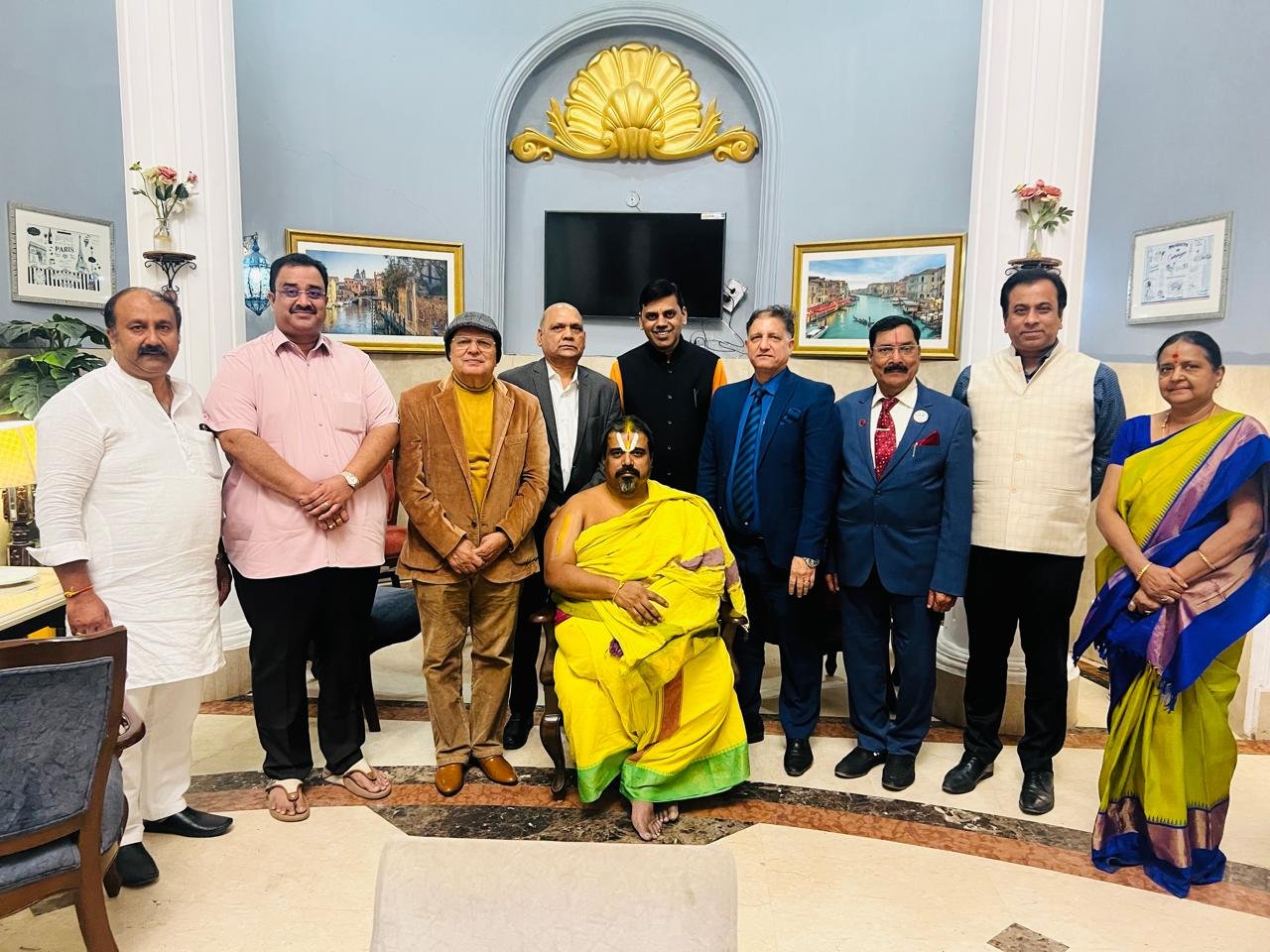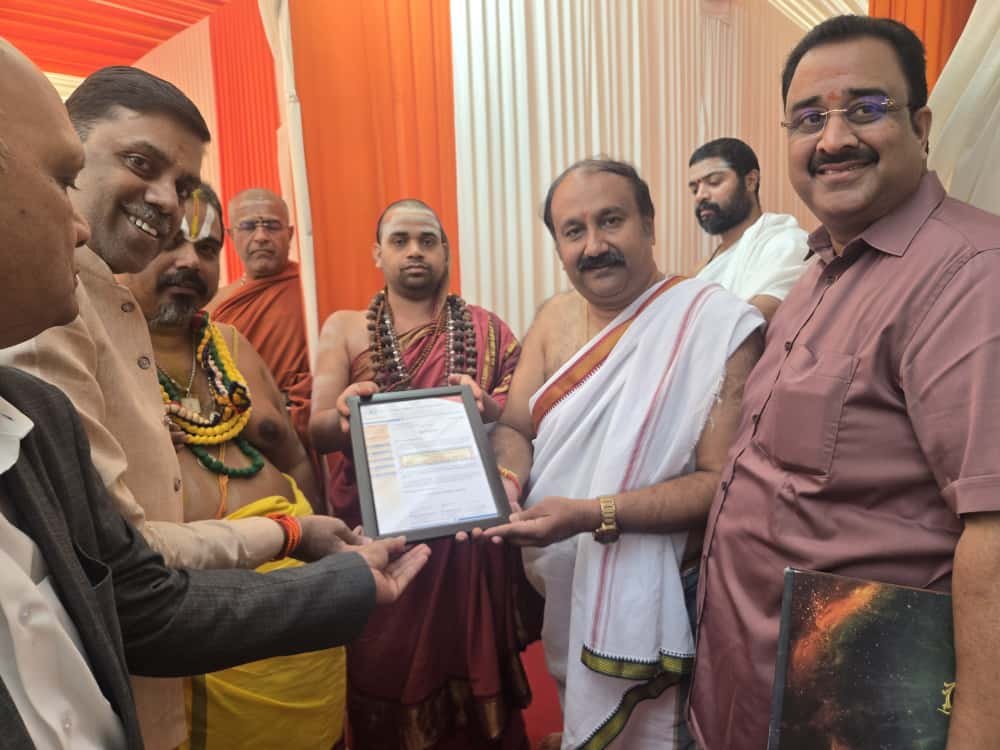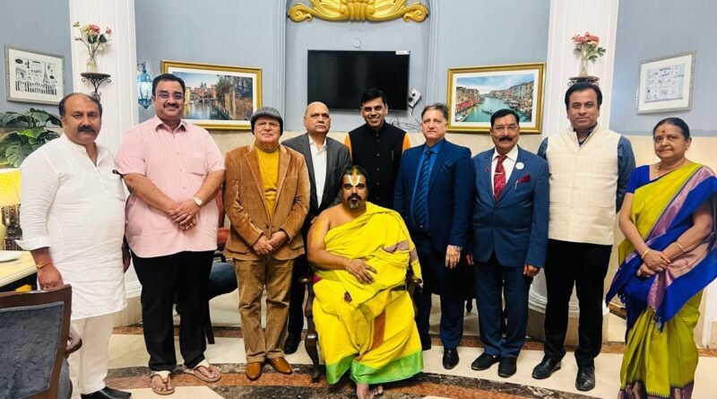 दिल्ली। श्री शारदा पीठ, श्रृंगेरी मठ के पूज्य जगद्गुरु शंकराचार्य जी श्री श्री विधुशेखर भारती जी महाराज जी ने अपने दिल्ली प्रवास के दौरान, वर्ल्ड ब्राह्मण फेडरेशन (WBF) कर्नाटक राज्य के नव निर्वाचित अध्यक्ष पंडित ए दिलीप कुमार को बधाई और आशीर्वाद प्रदान किया। महाराज जी ने अपने कर कमलों द्वारा उन्हें नियुक्ति पत्र सौंपा।