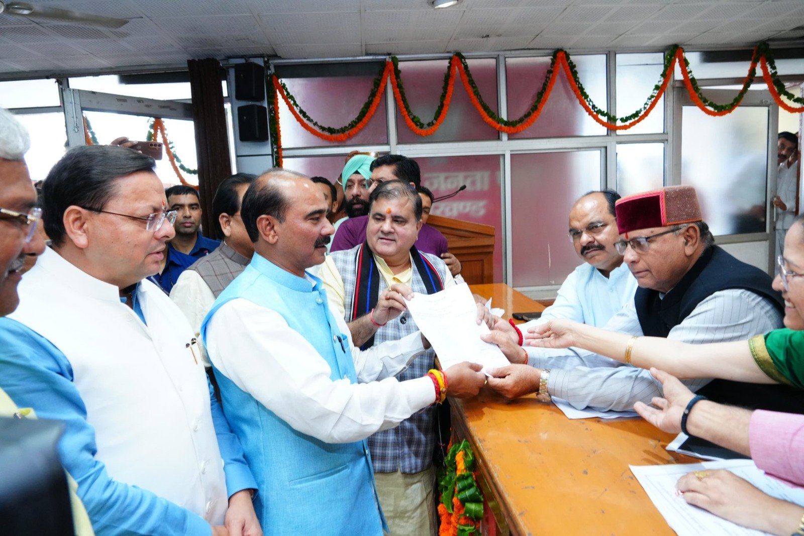 नामांकन प्रक्रिया के दौरान उत्तराखंड के मुख्यमंत्री पुष्कर सिंह धामी, केंद्रीय राज्यमंत्री अजय टम्टा, पूर्व मुख्यमंत्री त्रिवेंद्र सिंह रावत, सांसद श अजय भट्ट सहित पार्टी के कई वरिष्ठ नेता उपस्थित रहे।