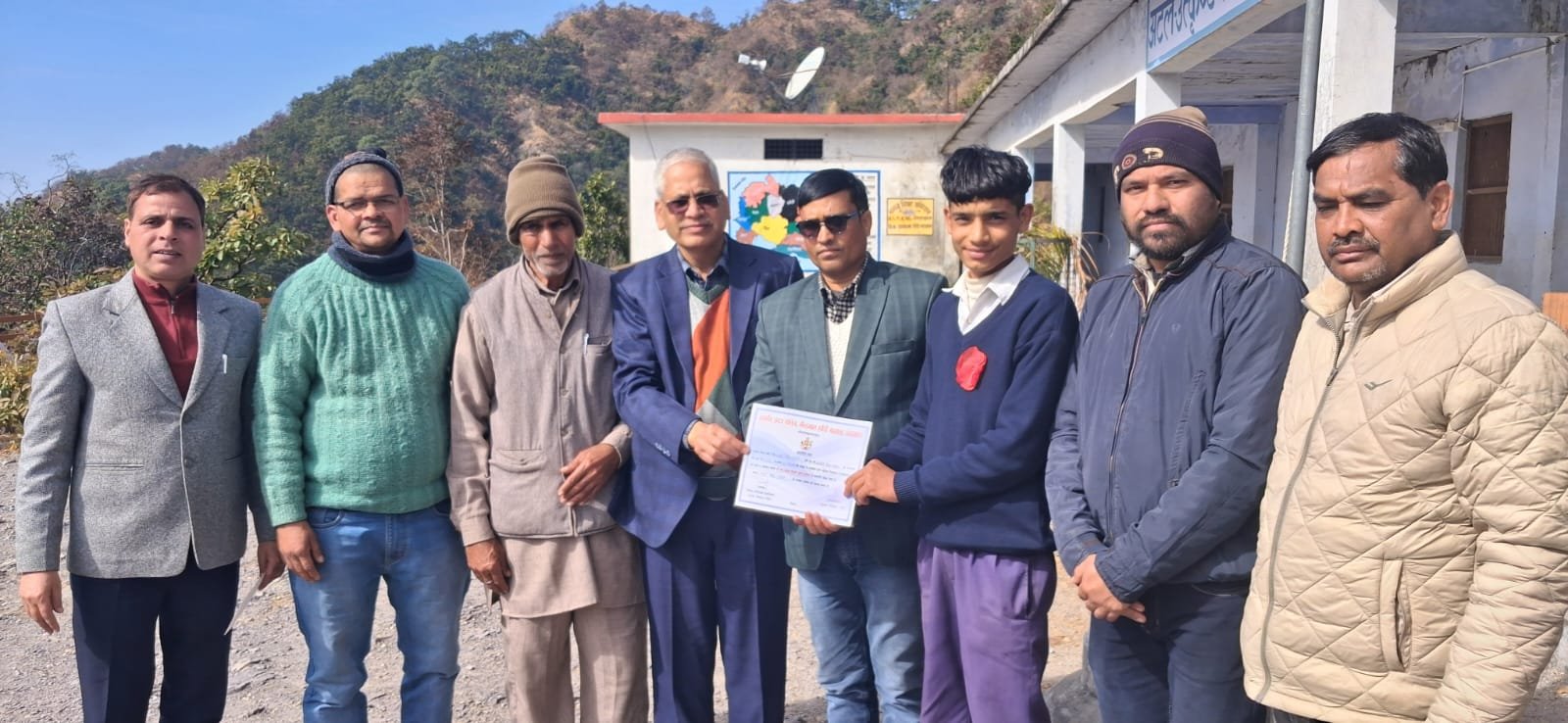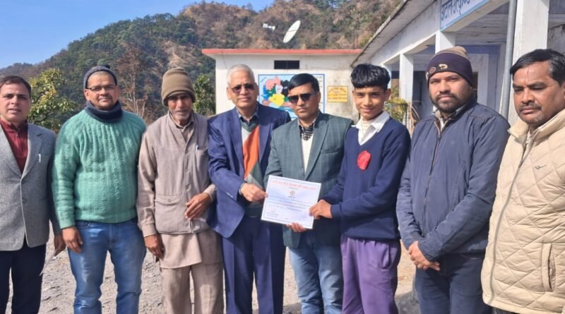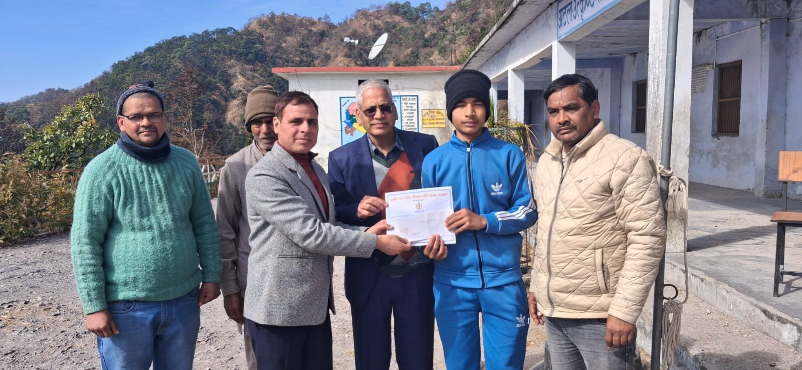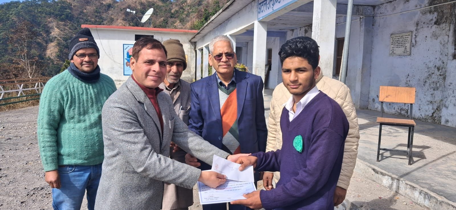 Amar sandesh उत्तराखंड।गणतंत्र दिवस के शुभ अवसर पर पट्टी तल्ला ढांगू स्थित *अटल उत्कृष्ट राजकीय इंटर कॉलेज गैंडखाल* में *26, जनवरी,2026 सोमवार* को आयोजित एक देश भक्ति से ओत-प्रोत सांस्कृतिक समारोह में राइका गैंडखाल में विद्यार्थियों के मध्य में *वर्ष 2024-2025* की बोर्ड की परीक्षा *बारहवीं* में *कला वर्ग में* पट्टी तल्ला ढांगू के ढौंर गांव के *प्रशांत रावत**विज्ञान वर्ग* में तल्ला ढांगू के ही ढासी गांव *अनूप सिंह रावत* पुत्र श्री जगदीश सिंह रावत व दसवीं में* अधिकतम अंक लाने के लिए तल्ला ढांगू के जसकोट गांव के *मनीष सिंह* पुत्र सम्पूर्ण सिंह को *बारहवें *चंद्र प्रकाश मैठाणी स्मृति मेधावी छात्र सम्मान* से कॉलेज के *प्रधानाचार्य* पार्थसारथी काला* ने *कॉलेज अभिभावक शिक्षक संघ के अध्यक्ष राजेंद्र सिंह बिष्ट, दिल्ली से आये चंद्र प्रकाश मैठाणी स्मृति पुरस्कार के संस्थापक पवन कुमार मैठाणी व सागर मैठाणी* *विद्यालय प्रबंधन समिति के अध्यक्ष राजपाल सिंह रावत, ग्राम झैड़ पंचायत के प्रधान मनवीर सिंह नेगी* समारोह में विशेषरुप से ऋषिकेश से भाग लेने पहुंचे *शिक्षक मुकेश मैठाणी*, ग्राम झैड़ गांव से आये *श्रीकांत मैठाणी* ग्राम कठूड़ *प्रदीप कुकरेती* व कॉलेज के प्रवक्ता* *डॉ. अनिल कुमार डबराल, प्रवक्ता अनिता डोभाल* व *प्रवक्ता प्रकाश रावत की* गरिमामयी उपस्थिति में सम्मानित किया गया।