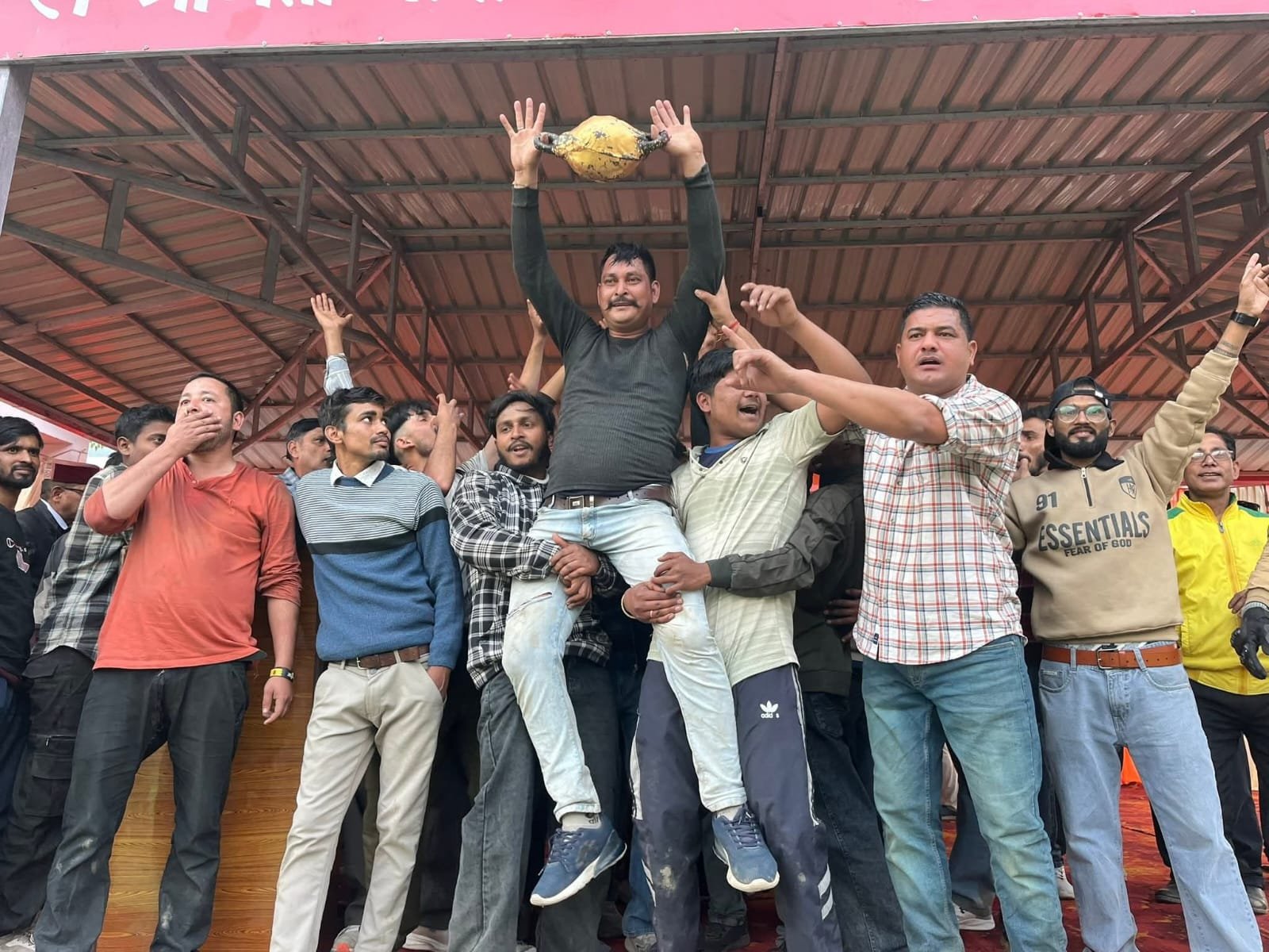 गेंद को जैसे ही मुख्यातिथि राजकुमार पोरी ने गेंदरो के बीच फैंका गेंद के लिए पट्टी लंगूर और मनियारस्यूं के बीच संघर्ष चलता रहा आखिर कड़ी मशक्कत के बाद 3.42 बजे तक चले इस जद्दोजद के बाद मनियारस्यूं पट्टी गेंद पर दूसरी बार कब्जा बरकार रखा विजेता प्रतिभागियों को मुख्य अतिथियों द्वारा ट्रॉफी भेंट की गई इस मौके पर जिला पंचायत सदस्य श्रीमती सविता,पूर्व ज्येष्ठ प्रमुख द्वारीखाल एवं श्री डांडा नागराजा स्टोन क्रेशर के ऑनर विनोद नेगी,समाजिक कार्यकर्ता जगमोहन डांगी, समाजिक कार्यकर्ता पुष्पेंद्र राणा,क्षेत्र पंचायत सदस्य आशीष नेगी,ग्राम प्रधान धारी मदन सिंह रावत,ग्राम प्रधान बिलखेत श्रीमती रश्मि देवी,महिपाल सिंह रावत सहित द्वारीखाल, कल्जीखाल क्षेत्र के भारी संख्या में बीडीसी सदस्य एवं ग्राम प्रधान मौजूद थे।