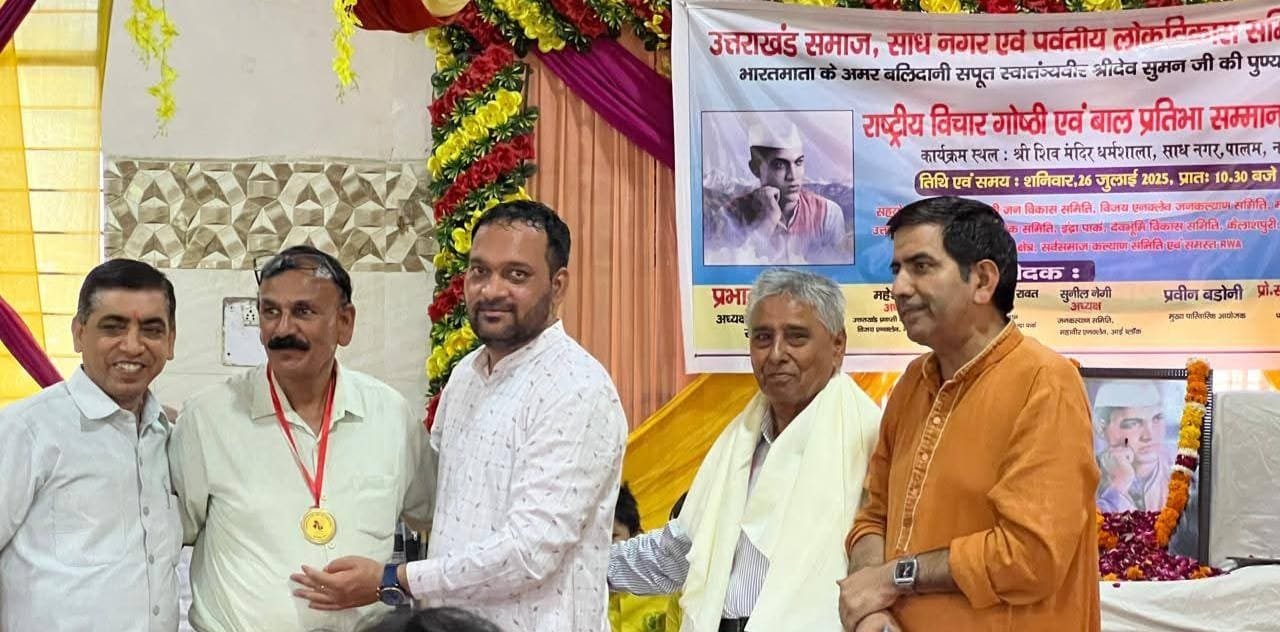नई दिल्ली। अमर बलिदानी श्रीदेव सुमन की 81वीं पुण्यतिथि पर उत्तराखंड समाज तथा पर्वतीय लोक विकास समिति दिल्ली ईकाई द्वारा 26 जुलाई को दक्षिणी दिल्ली, पालम क्षेत्र के साध नगर स्थित श्री शिव मंदिर धर्मशाला में राष्ट्रीय विचार गोष्ठी तथा बाल प्रतिभा सम्मान समारोह 2025 का आयोजन दिल्ली सरकार के सेवानिवृत निदेशक और वरिष्ठ समाजसेवी जय लाल नवानी की अध्यक्षता में आयोजित किए गए।