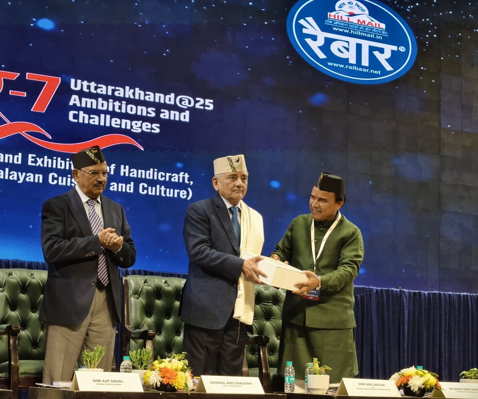 नई दिल्ली। उत्तराखंड की संस्कृति, संभावनाओं और विकास के प्रति समर्पित प्रतिष्ठित मीडिया संस्थान हिल मेल द्वारा 17 जनवरी को नई दिल्ली स्थित कांस्टीट्यूशन क्लब ऑफ इंडिया से जुड़े मावलंकर सभागार में ‘रैबार -7 ब्रांड उत्तराखंड’ नाम से एक भव्य कार्यक्रम का आयोजन मुख्य अतिथि राष्ट्रीय सुरक्षा सलाहकार अजीत डोभाल, विशिष्ठ अतिथियों में प्रमुख भारतीय सशस्त्र सेना रक्षा प्रमुख (सीडीएस) अनिल चौहान, लेफ्टिनेंट जनरल डीजी असम राइफल्स विकास लखेड़ा, हरिद्वार लोकसभा सांसद एवं पूर्व मुख्यमंत्री उत्तराखंड त्रिवेंद्र सिंह रावत, पौड़ी गढ़वाल सांसद अनिल बलूनी तथा उत्तराखंड कैबिनेट मंत्री धन सिंह रावत मंचासीनों तथा लेफ्टिनेंट जनरल ए पी सिंह, ब्रिगेडियर विनोद नेगी, सुश्री शालिनी रावत, कैबिनेट मंत्री उत्तराखंड सरकार सुबोध उनियाल, सेवानिवृत लेफ्टिनेंट जनरल एवं डीजी इंडियन स्पेश एसोसिएशन अनिल भट्ट, अतिरिक्त सचिव विदेश मंत्रालय आईएफएस आलोक अमिताभ डिमरी, कर्नल अजय कोठियाल इत्यादि इत्यादि की प्रभावी उपस्थिति में आयोजित किया गया।