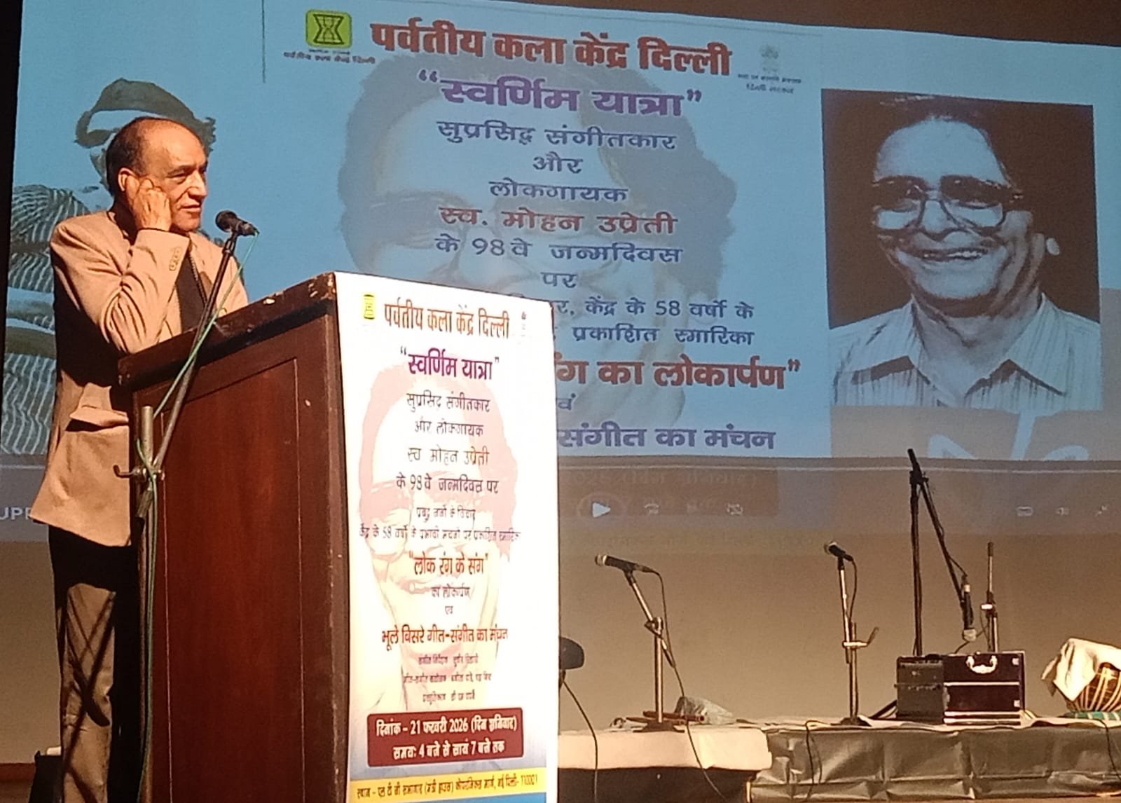 प्रबुद्ध वक्ताओं द्वारा अवगत कराया गया, भारतीय रंगमंच संगीत के अग्रदूत मोहन उप्रेती द्वारा लोक कलाकार संघ, अल्मोड़ा के संस्थापक निदेशक के रूप में कार्य करने के बाद वर्ष 1968 दिल्ली में पर्वतीय कला केंद्र की स्थापना की, गठित संस्था सांस्कृतिक निदेशक तथा संस्था अध्यक्ष बने। उन्होंने पर्वतीय कला केंद्र को एक जीवंत और रचनात्मक मंच में परिवर्तित किया, उत्तराखंड की अनेकों लोकप्रिय पौराणिक व लोकगाथाओं का गीत नाट्य के रूप में मंचन किया और केंद्रीय हिमालयी क्षेत्र की लोककलाओं को भारत तथा विदेशों के कला-प्रेमियों के बीच नई पहचान दिलाई। वर्ष 1977 से 1990 तक राष्ट्रीय नाट्य विद्यालय में संगीत के एसोसिएट प्रोफेसर रहे और कुछ समय के लिए उक्त संस्थान के निदेशक के रूप में भी उन्होंने कार्य किया था।
