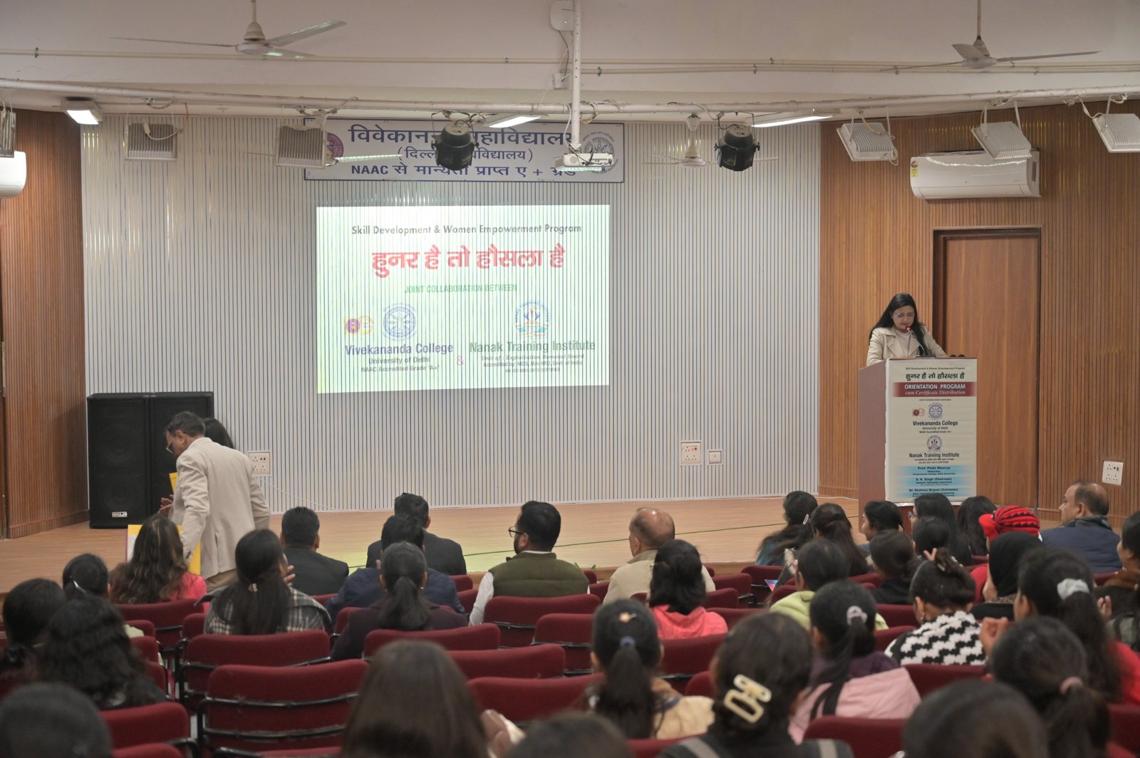 दिल्ली। देश में युवाओं और महिलाओं को कौशल आधारित प्रशिक्षण के माध्यम से आत्मनिर्भर बनाने की दिशा में नानक ट्रेनिंग इंस्टीट्यूट एक सशक्त पहल के रूप में निरंतर कार्य कर रहा है। रोजगारोन्मुखी प्रशिक्षण, महिला सशक्तिकरण और कौशल विकास को समर्पित यह संस्थान आज देशभर में अपनी सकारात्मक पहचान बना चुका है। इसी क्रम में नानक ट्रेनिंग इंस्टीट्यूट (यूनिट एक्सप्लॉइटेशन रिमूवल बोर्ड) एवं विवेकानंद कॉलेज के संयुक्त सहयोग से महिला सशक्तिकरण एवं कौशल विकास कार्यक्रम “हुनर है तो हौसला है” के अंतर्गत कॉलेज परिसर के शारदा हॉल में ओरिएंटेशन एवं प्रमाण-पत्र वितरण समारोह का सफल आयोजन किया गया।
