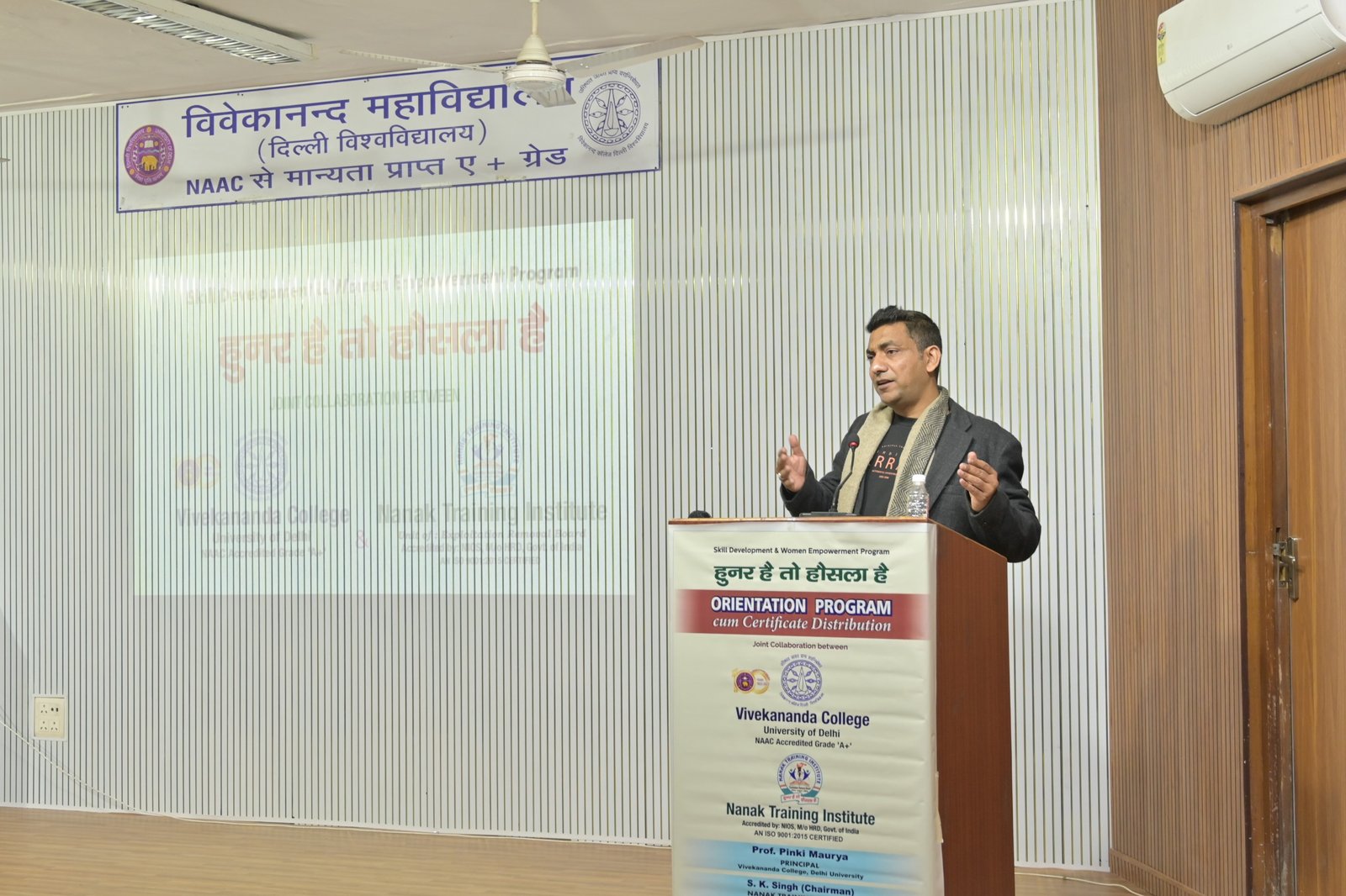 दिल्ली। देश में युवाओं और महिलाओं को कौशल आधारित प्रशिक्षण के माध्यम से आत्मनिर्भर बनाने की दिशा में नानक ट्रेनिंग इंस्टीट्यूट एक सशक्त पहल के रूप में निरंतर कार्य कर रहा है। रोजगारोन्मुखी प्रशिक्षण, महिला सशक्तिकरण और कौशल विकास को समर्पित यह संस्थान आज देशभर में अपनी सकारात्मक पहचान बना चुका है। इसी क्रम में नानक ट्रेनिंग इंस्टीट्यूट (यूनिट एक्सप्लॉइटेशन रिमूवल बोर्ड) एवं विवेकानंद कॉलेज के संयुक्त सहयोग से महिला सशक्तिकरण एवं कौशल विकास कार्यक्रम “हुनर है तो हौसला है” के अंतर्गत कॉलेज परिसर के शारदा हॉल में ओरिएंटेशन एवं प्रमाण-पत्र वितरण समारोह का सफल आयोजन किया गया।