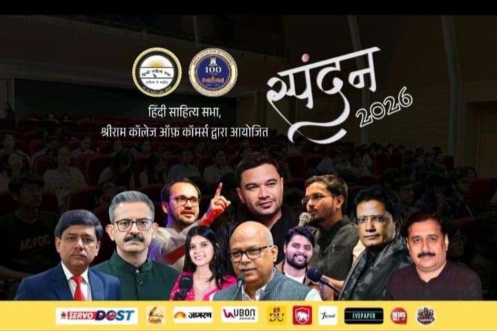 Amar sandesh नई दिल्ली। श्रीराम कॉलेज ऑफ कॉमर्स की हिंदी साहित्य सभा द्वारा आयोजित स्पंदन-2026 के दूसरे दिन बुधवार को विभिन्न साहित्यिक और सांस्कृतिक कार्यक्रमों का आयोजन किया जाएगा। कार्यक्रम की शुरुआत सुबह 9:30 बजे अंतर-महाविद्यालय स्वरचित कविता प्रतियोगिता से होगी, जिसमें विभिन्न महाविद्यालयों के विद्यार्थी अपनी रचनात्मक प्रतिभा का प्रदर्शन करेंगे।