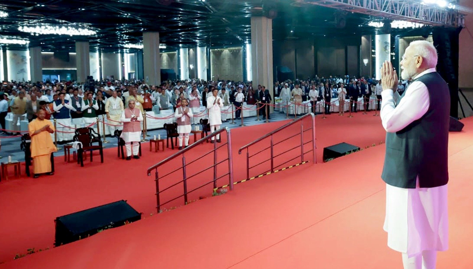 इस मौके पर मुख्यमंत्री योगी आदित्यनाथ ने प्रधानमंत्री का स्वागत किया और फिरोजाबाद के कारीगरों द्वारा निर्मित मां दुर्गा की कांच की प्रतिमा भेंट की। इस अवसर पर सांसद डॉक्टर महेश शर्मा, मंत्री नंद गोपाल नंदी, राकेश सचान सहित प्रदेश सरकार के कई मंत्री, सांसद और वरिष्ठ अधिकारी मौजूद रहे। रूस इस बार के ट्रेड शो का कंट्री पार्टनर है।