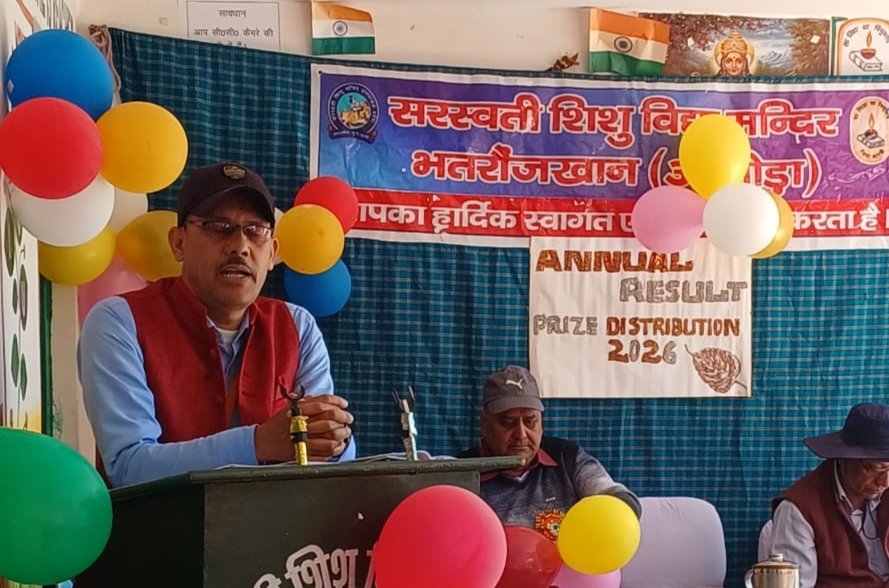भतरौंजखान (अल्मोड़ा)। भारतीय संस्कृति और संस्कारों के साथ आधुनिक शिक्षा देने वाले सरस्वती शिशु विद्या मंदिर भतरौंजखान द्वारा 31 मार्च को विद्या मंदिर प्रांगण में शिक्षारत विद्यार्थियों का परीक्षाफल वितरण तथा वार्षिकोत्सव कार्यक्रम का भव्य आयोजन मुख्य अतिथि डॉ. शिवांगी दीक्षित, विशिष्ट अतिथि विष्णु दत्त पंत, प्रकाश चंद्र पांडे व चंद्र मोहन पपनै तथा स्कूल प्रबंधन अध्यक्ष भगवत सिंह नेगी, मुख्य अविभावक जगदीश पांडे, कस्बे के आमंत्रित प्रबुद्ध जनों व शिक्षारत छात्र-छात्राओं के अभिभावकों की बड़ी संख्या में प्रभावी उपस्थित के मध्य अति हर्षोल्लास के साथ मनाया गया।