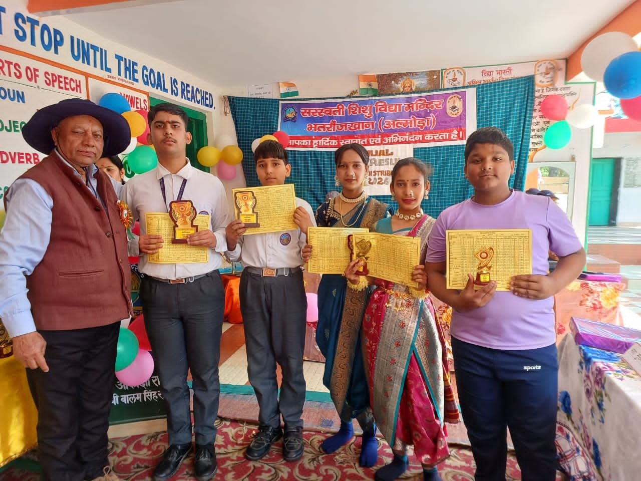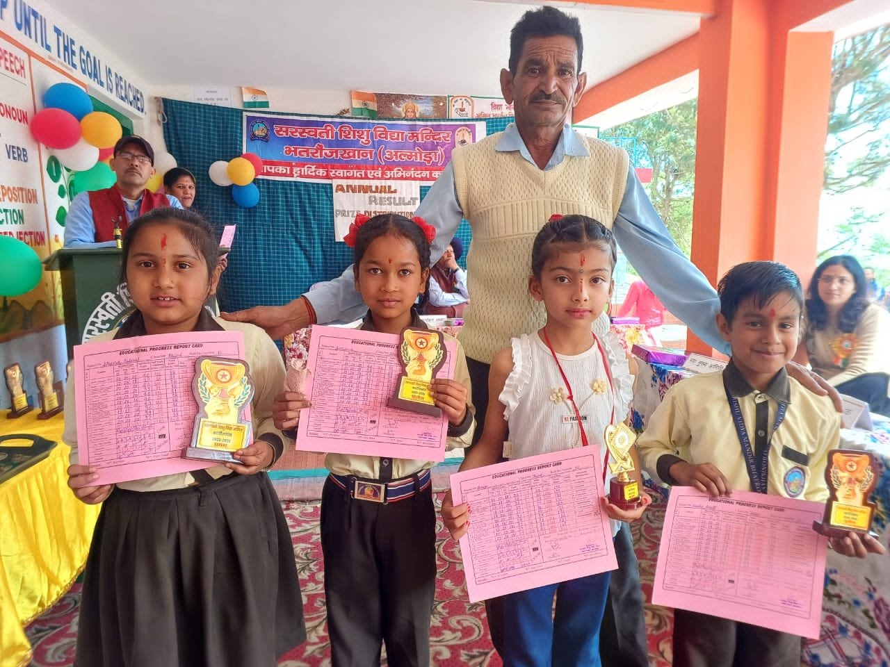 छात्र-छात्राओं की उपलब्धियों व विद्या मंदिर से जुड़े आचार्यों द्वारा विद्यार्थियों के उज्जवल भविष्य हेतु दी जा रही शिक्षा व मिली उपलब्धियों पर प्रधानाचार्य हरीश सिंह मेहता द्वारा सारगर्भित प्रकाश डाला गया। मंचासीन मुख्य व विशिष्ठ अतिथियों व उपस्थित अभिभावकों में प्रमुख वीरेंद्र रावत खुल्बे, भुवन पपनै, तनूजा राणा, उषा नैनवाल, सोनिया पांडे, भावना अधिकारी, मोनिका अधिकारी, नवीन पडलिया, गणेश पडलिया, महेश नैनवाल, हरीश गोस्वामी इत्यादि इत्यादि के कर कमलों नर्सरी से कक्षा आठ तक के शिक्षा व अन्य अनेकों विधाओं व गतिविधियों में शीर्ष स्थान प्राप्त विद्यार्थियों को प्रोत्साहन स्वरूप स्मृति चिन्ह, वार्षिक अंक प्रमाण पत्र व अन्य पुरस्कार प्रदान किए गए।