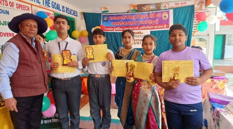 भतरौंजखान (अल्मोड़ा)। भारतीय संस्कृति और संस्कारों के साथ आधुनिक शिक्षा देने वाले सरस्वती शिशु विद्या मंदिर भतरौंजखान द्वारा 31 मार्च को विद्या मंदिर प्रांगण में शिक्षारत विद्यार्थियों का परीक्षाफल वितरण तथा वार्षिकोत्सव कार्यक्रम का भव्य आयोजन मुख्य अतिथि डॉ. शिवांगी दीक्षित, विशिष्ट अतिथि विष्णु दत्त पंत, प्रकाश चंद्र पांडे व चंद्र मोहन पपनै तथा स्कूल प्रबंधन अध्यक्ष भगवत सिंह नेगी, मुख्य अविभावक जगदीश पांडे, कस्बे के आमंत्रित प्रबुद्ध जनों व शिक्षारत छात्र-छात्राओं के अभिभावकों की बड़ी संख्या में प्रभावी उपस्थित के मध्य अति हर्षोल्लास के साथ मनाया गया।