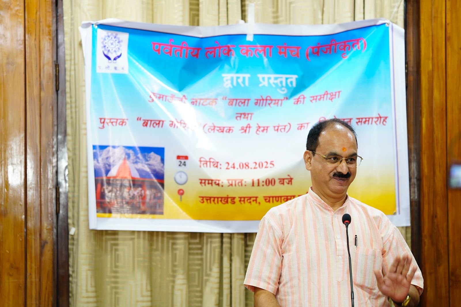 Amar sandesh नई दिल्ली: पर्वतीय लोक कला मंच द्वारा रविवार, 24 अगस्त को उत्तराखंड सदन, चाणक्यपुरी, नई दिल्ली में एक विशेष कार्यक्रम का आयोजन किया गया। इस कार्यक्रम में ‘बाला गोरिया’ नामक संगीत नाटक की समीक्षा की गई, जिसका मंचन 19 जुलाई को दिल्ली के सत्य साईं ऑडिटोरियम में श्री भगत सिंह कोश्यारी (पूर्व उपराज्यपाल, महाराष्ट्र तथा पूर्व मुख्यमंत्री उत्तराखंड) के सानिध्य में मंचित हुआ था। उत्तराखंड सदन में इस अवसर पर हेम पंत द्वारा लिखित ‘बाला गोरिया’ कुमाऊँनी नाटक पर आधारित पुस्तक का विमोचन भी किया गया।
