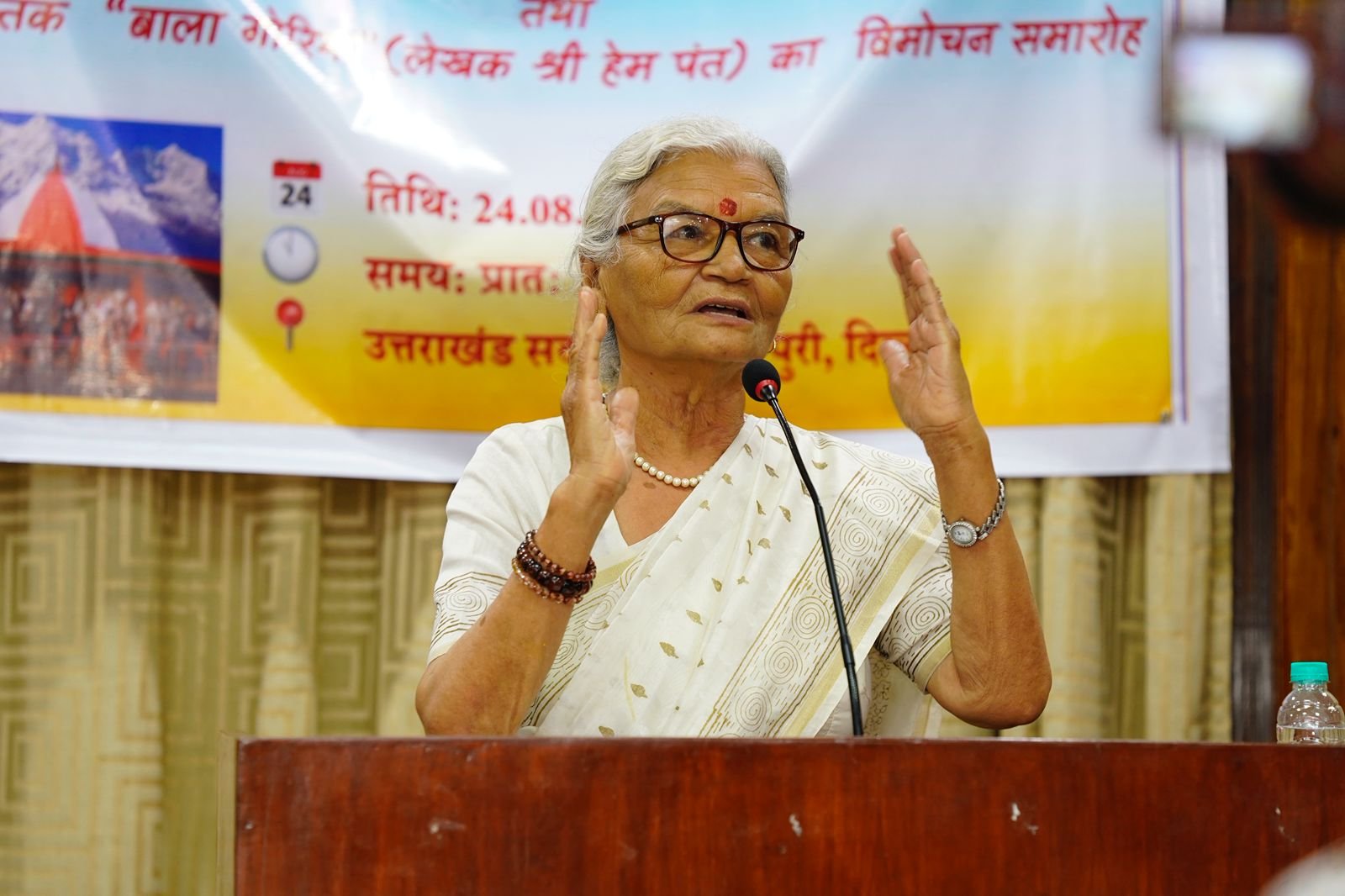 इस आयोजन की अध्यक्षता रंगमंच और उत्तराखंड सिनेमा की प्रसिद्ध निर्देशक श्रीमती सुशीला रावत ने की। मंच पर कई गणमान्य व्यक्ति उपस्थित थे, जिनमें भारतीय सिविल सेवा से सेवानिवृत्त अधिकारी श्री हीरा बल्लभ जोशी, गैस रेगुलेटरी बोर्ड के सेवानिवृत्त सदस्य श्री बी.एस. नेगी, लेखिका डॉ. हेमा उनियाल, उत्तराखंड के मुख्यमंत्री के मीडिया समन्वयक श्री मदन मोहन सती, वरिष्ठ रंगकर्मी श्रीमती लक्ष्मी रावत, वरिष्ठ पत्रकार श्री चारु तिवारी, दिल्ली विश्वविद्यालय की पूर्व उप-प्राचार्या डॉ. आशा जोशी और फिल्म निर्माता श्री संजय जोशी शामिल थे।
