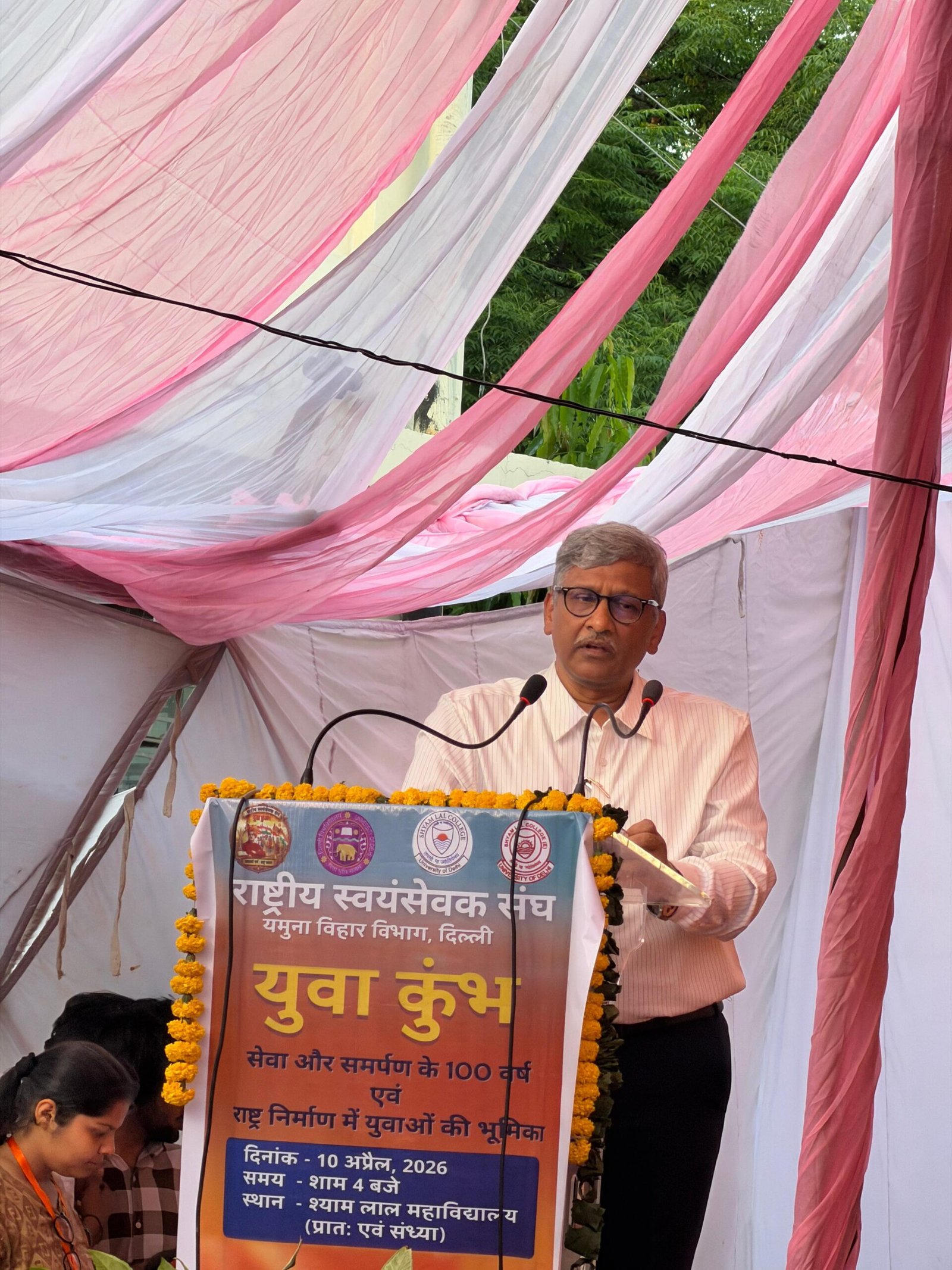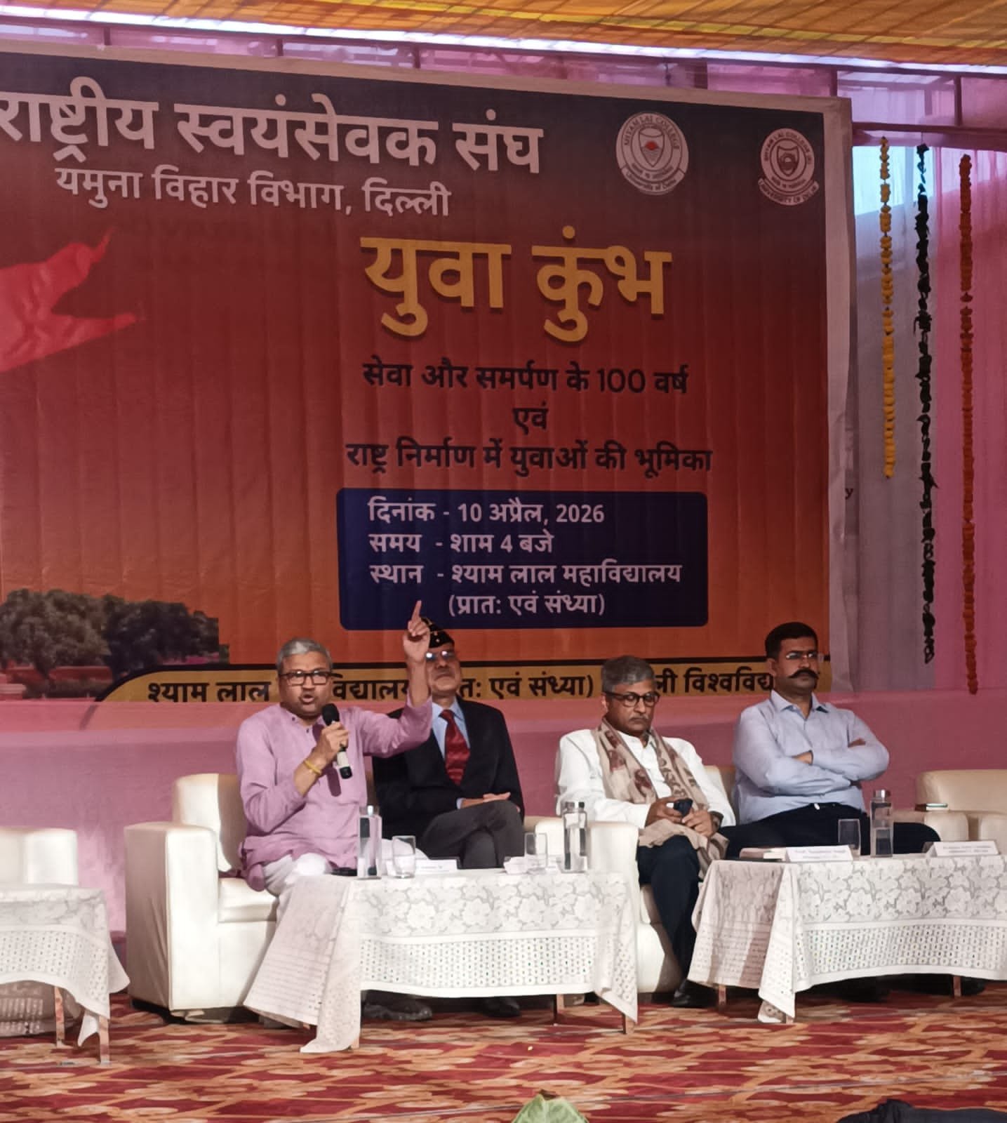 श्याम लाल कॉलेज (सांध्य) के प्राचार्य प्रो. नचिकेता सिंह ने अपने स्वागत में कहा कि उनका युवाओं के साथ हमेशा अटूट संबंध रहा है।उन्हें राष्ट्र निर्माण के लिए प्रेरित करने का काम हम लगातार करते आ रहे हैं।युवाओं को अपनी संस्कृति और धरोहर की तरफ फिर से मोड़ने का काम संघ लगातार कर रहा है।यह कार्यक्रम उसी का प्रतिफलन है।इसलिए आज हमें विकसित राष्ट्र निर्माण के लिए शपथ लेनी होगी कि हम अपनी क्षमताओं के अनुसार उसमें सहयोग करें। ऐसे आयोजन भारतीय ज्ञान परम्परा को पुनर्जीवित करने का सशक्त माध्यम हैं।