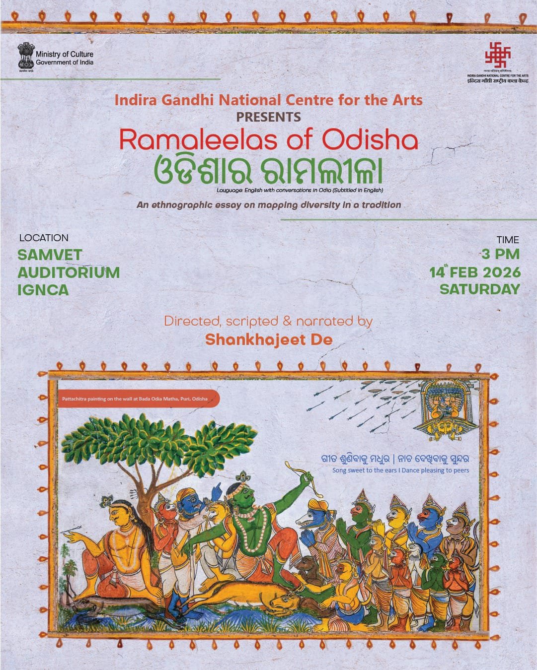 फिल्म की स्क्रीनिंग के बाद निर्देशक शंखजीत दे ने दर्शकों के साथ एक संवाद सत्र का नेतृत्व किया। उन्होंने फिल्म निर्माण के दौरान के अनुभवों को साझा करते हुए बताया कि ओडिशा में रामलीला केवल मनोरंजन नहीं, बल्कि एक गहरा अनुष्ठान है जो कलाकारों और दर्शकों को सामूहिक स्मृतियों और आध्यात्मिक आकांक्षाओं से जोड़ता है। उपस्थित दर्शकों और विद्वानों ने फिल्म की सराहना करते हुए इसे भारतीय प्रदर्शन कला परंपराओं के अन्वेषण की दिशा में एक महत्वपूर्ण कदम बताया।